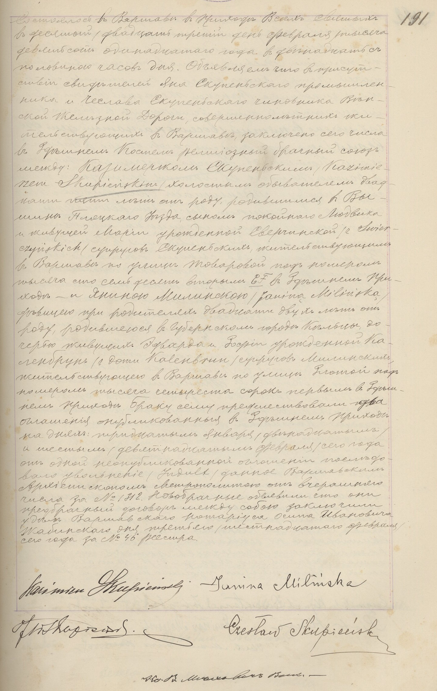 | sw.514800 | sw.514800 | sw.509530 (sw.509530) | sw.509533 (sw.509533) | Akt małżeństwa: Warszawa Wsz. Św. (obecn. m. Warszawa), 191/1911 [indeks na http://geneteka.genealodzy.pl/] http://metryki.genealodzy.pl/metryka.php?ar=8&zs=9264d&sy=335&kt=1&skan=191.jpg [podgląd] |