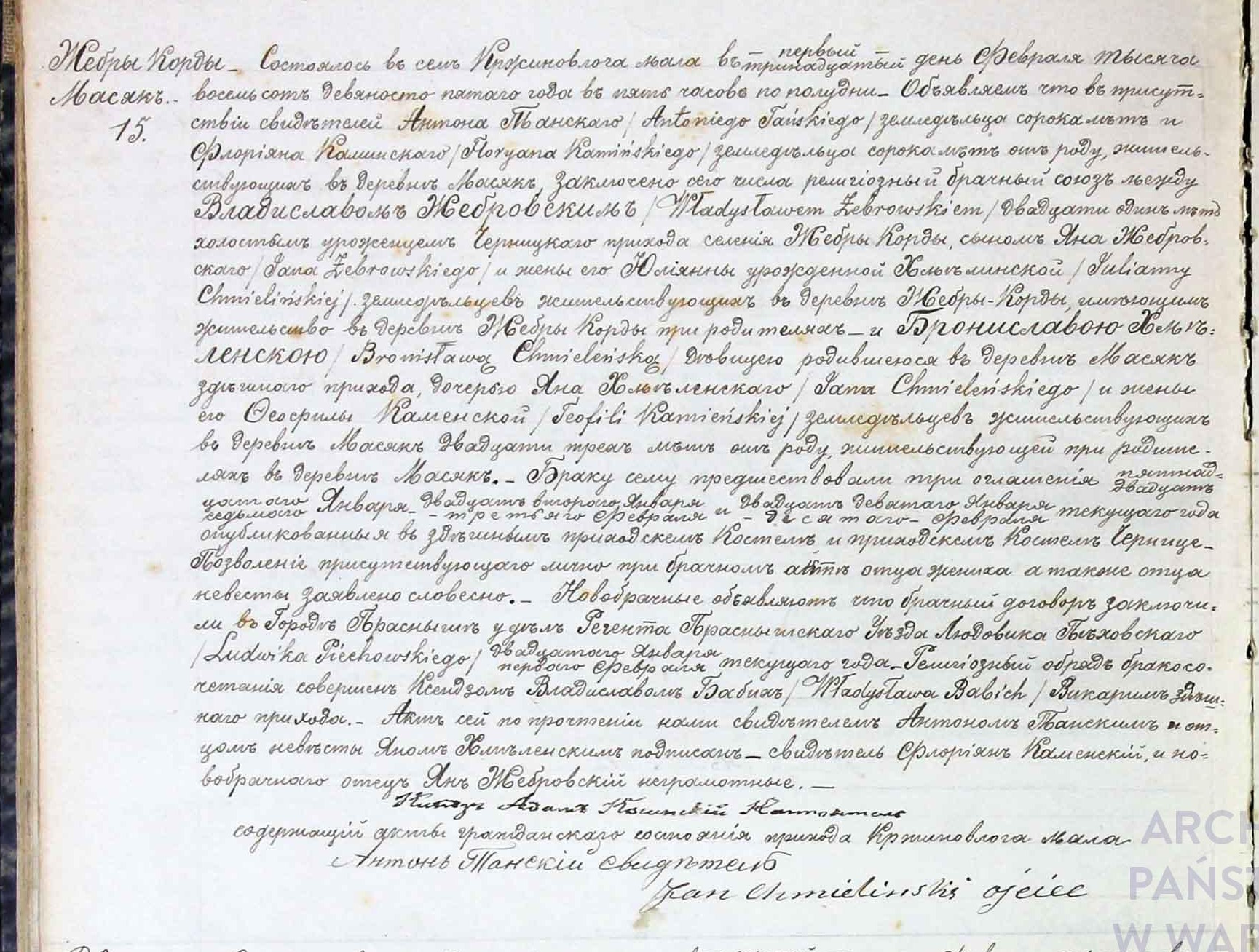 | sw.513823 | sw.513823 | sw.509558 (sw.509558) | sw.509561 (sw.509561) | Akt małżeństwa: Czernice Borowe (obecn. woj. mazow.), 3/1886 [indeks na http://geneteka.genealodzy.pl/] http://metryki.genealodzy.pl/metryki.php?op=kt&ar=13&zs=0175d&sy=1886&kt=2 [podgląd] |