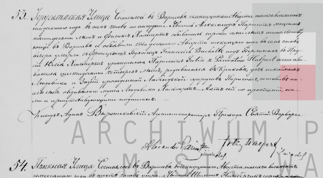 | sw.1040741 | sw.1040741 | sw.81851 (sw.81851) | sw.51467 (sw.51467) | Akt zgonu: Warszawa św. Aleksander (obecn. m. Warszawa), 336/1903 [indeks na http://geneteka.genealodzy.pl/] http://localhost/mjm/aleksander_1903_159_31_0333.jpg [podgląd] |