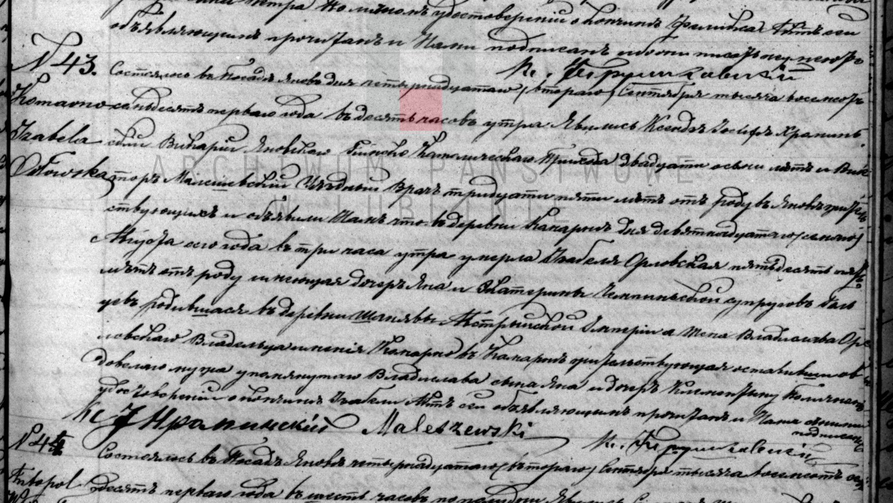 | sw.703822 | 3.730.19 (3.730.19) | 3.730.18 (3.730.18) | Akt małżeństwa: Janów Podlaski (obecn. woj. lubel.), 4/1832 [indeks na http://lubgens.eu/] https://szukajwarchiwach.pl/35/1833/0/2.4/32/skan/full/qnl8EIiYVjHZYan6MeL4RA [podgląd] |