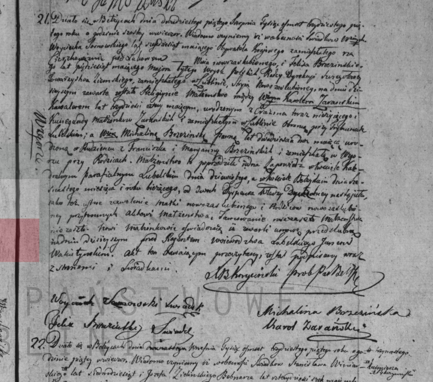 | sw.518272 | | | 1835 | | | | wychodzi za mąż | Akt małżeństwa: Lublin (św. Jana) (obecn. woj. lubel.), 1/1862 [indeks na http://lubgens.eu/] http://szukajwarchiwach.pl/35/1859/0/2.4/45/str/1/7/15#tabSkany |