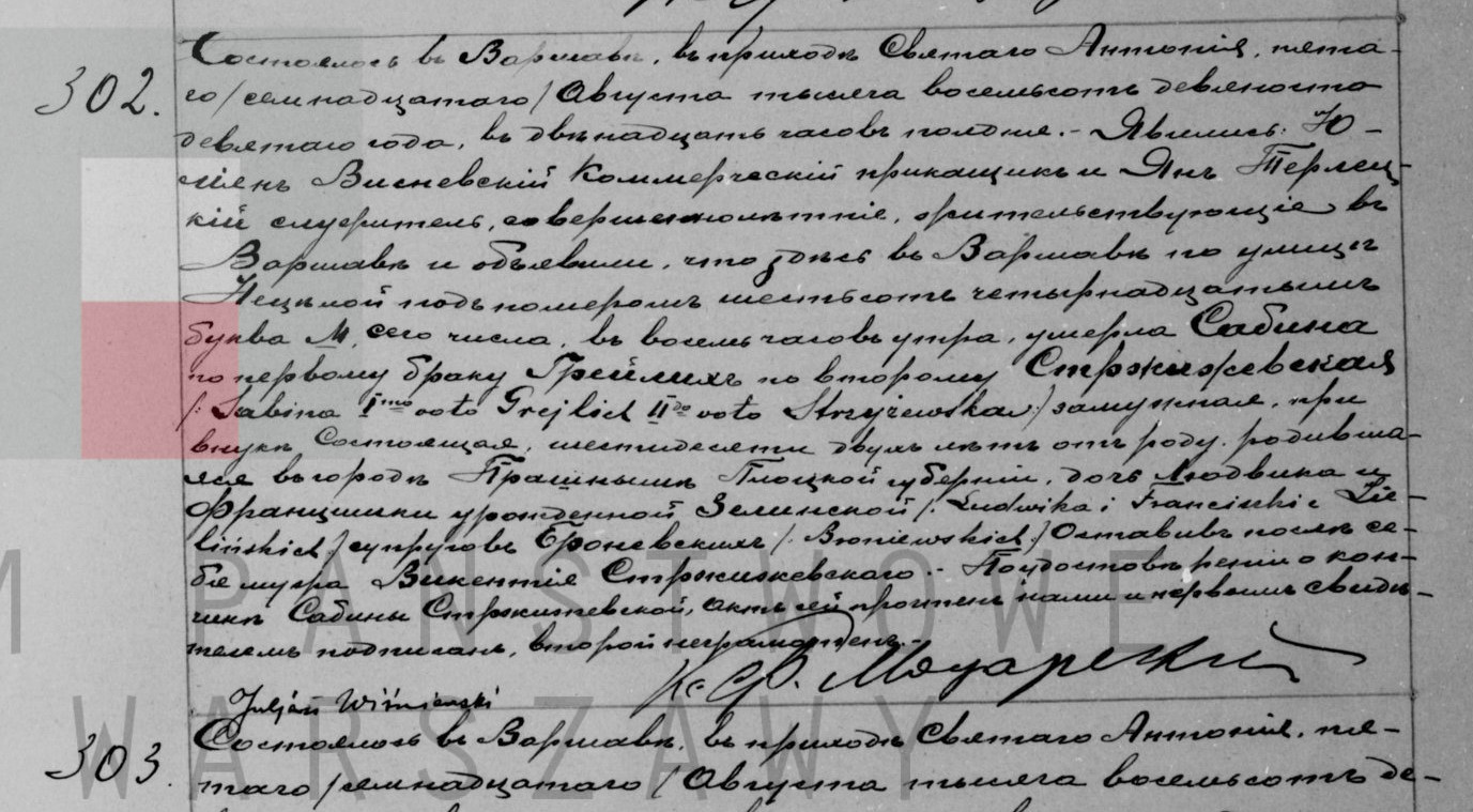 | sw.426132 | sw.519425 | sw.519426 (sw.519426) | sw.519427 (sw.519427) | Akt małżeństwa: Warszawa św. Krzyż (obecn. m. Warszawa), 32/1873 [indeks na http://geneteka.genealodzy.pl/] http://metryki.genealodzy.pl/metryki.php?op=kt&ar=1&zs=0158d&sy=1873&kt=2 [podgląd] |