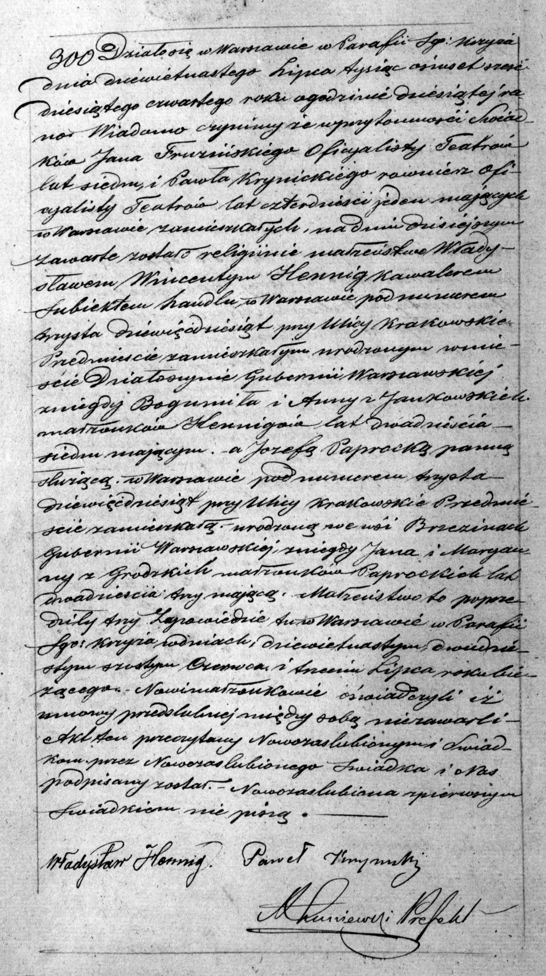 | sw.528751 | sw.528752 (sw.528752) | sw.528753 (sw.528753) | Akt małżeństwa: Praszka (obecn. woj. opol.), [bez nru]/1809 [indeks na http://geneteka.genealodzy.pl/] https://familysearch.org/pal:/MM9.3.1/TH-1-12886-130511-95 [podgląd] |