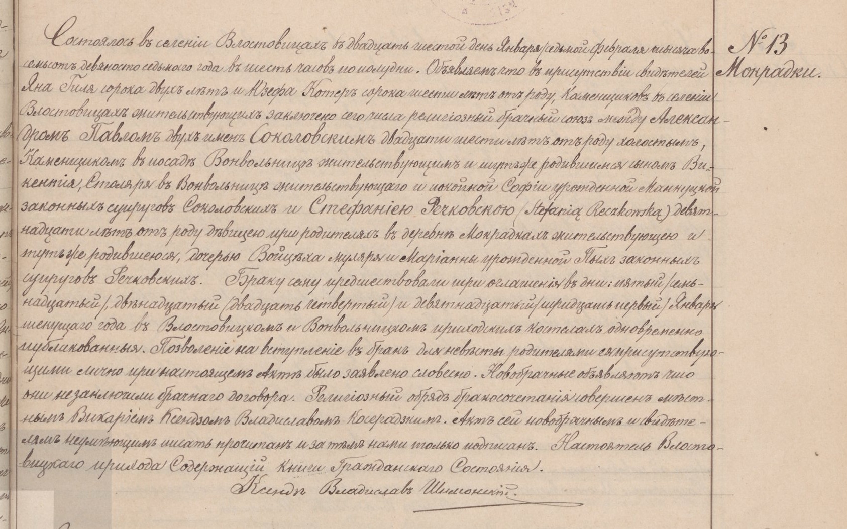 | sw.989972 | sw.989972 | sw.527406 (sw.527406) | sw.527407 (sw.527407) | Akt małżeństwa: Puławy-Włostowice (obecn. woj. lubel.), 13/1897 [indeks na http://geneteka.genealodzy.pl/] http://szukajwarchiwach.pl/35/1957/0/2.4/113#tabJednostka [podgląd] |
