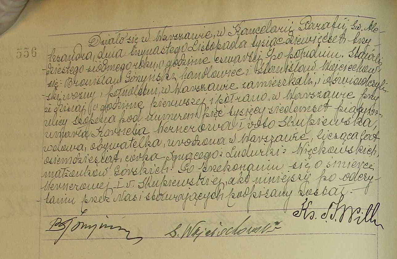 | sw.556087 | sw.556087 | sw.550045 (sw.550045) | sw.550046 (sw.550046) | Akt małżeństwa: Warszawa św. Aleksander (obecn. m. Warszawa), 144/1887 [indeks na http://geneteka.genealodzy.pl/] http://metryki.genealodzy.pl/metryki.php?op=kt&ar=1&zs=0162d&sy=1887&kt=2 [podgląd] |