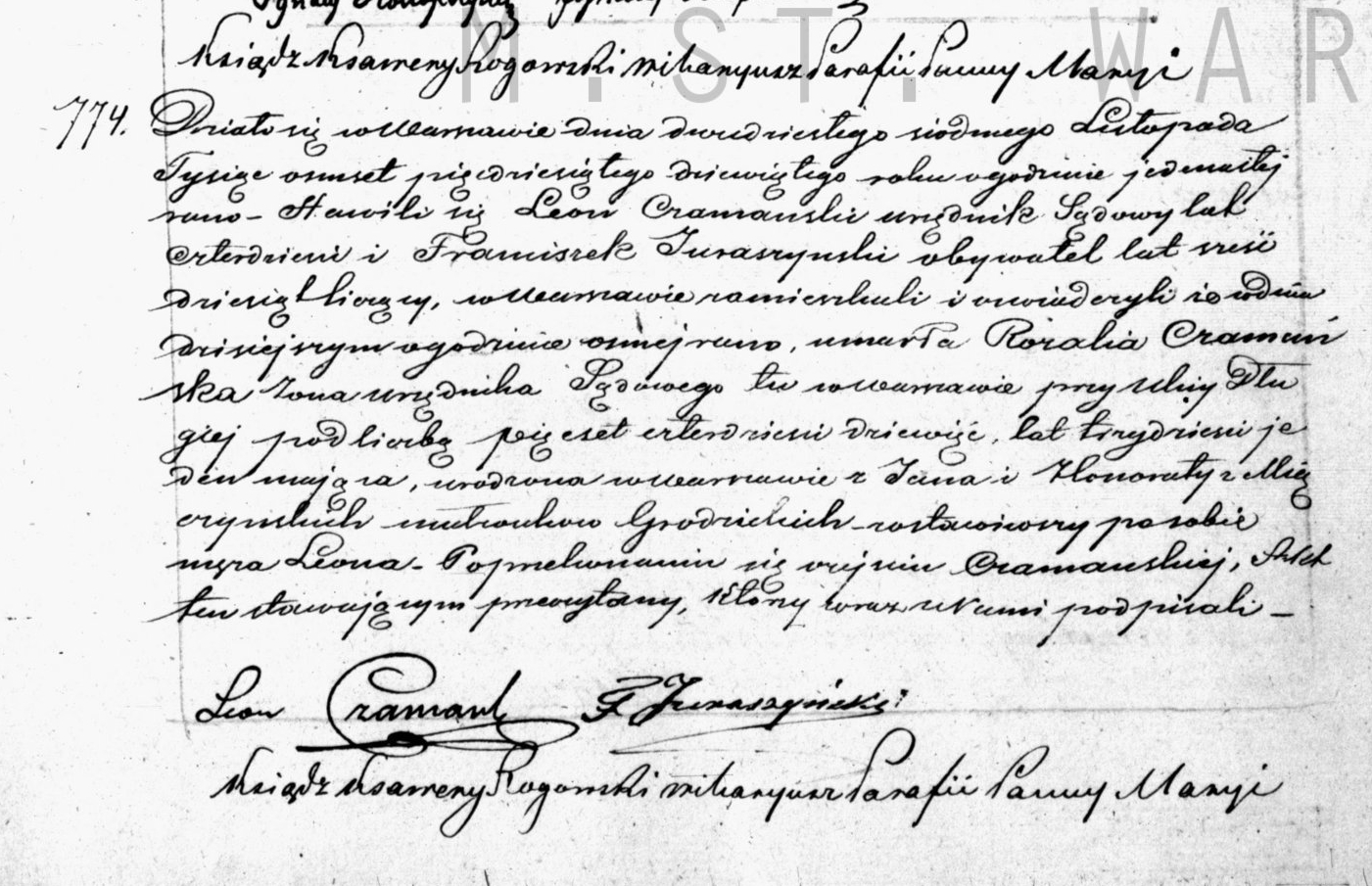 | sw.553130 | sw.553131 (sw.553131) | sw.553132 (sw.553132) | Akt zgonu: Warszawa Nawiedzenie NMP (obecn. m. Warszawa), 774/1859 [indeks na http://geneteka.genealodzy.pl/] http://szukajwarchiwach.pl/72/160/0/-/30/skan/full/T4E3mXUbdfp3F4DrAW38Jg [podgląd] |