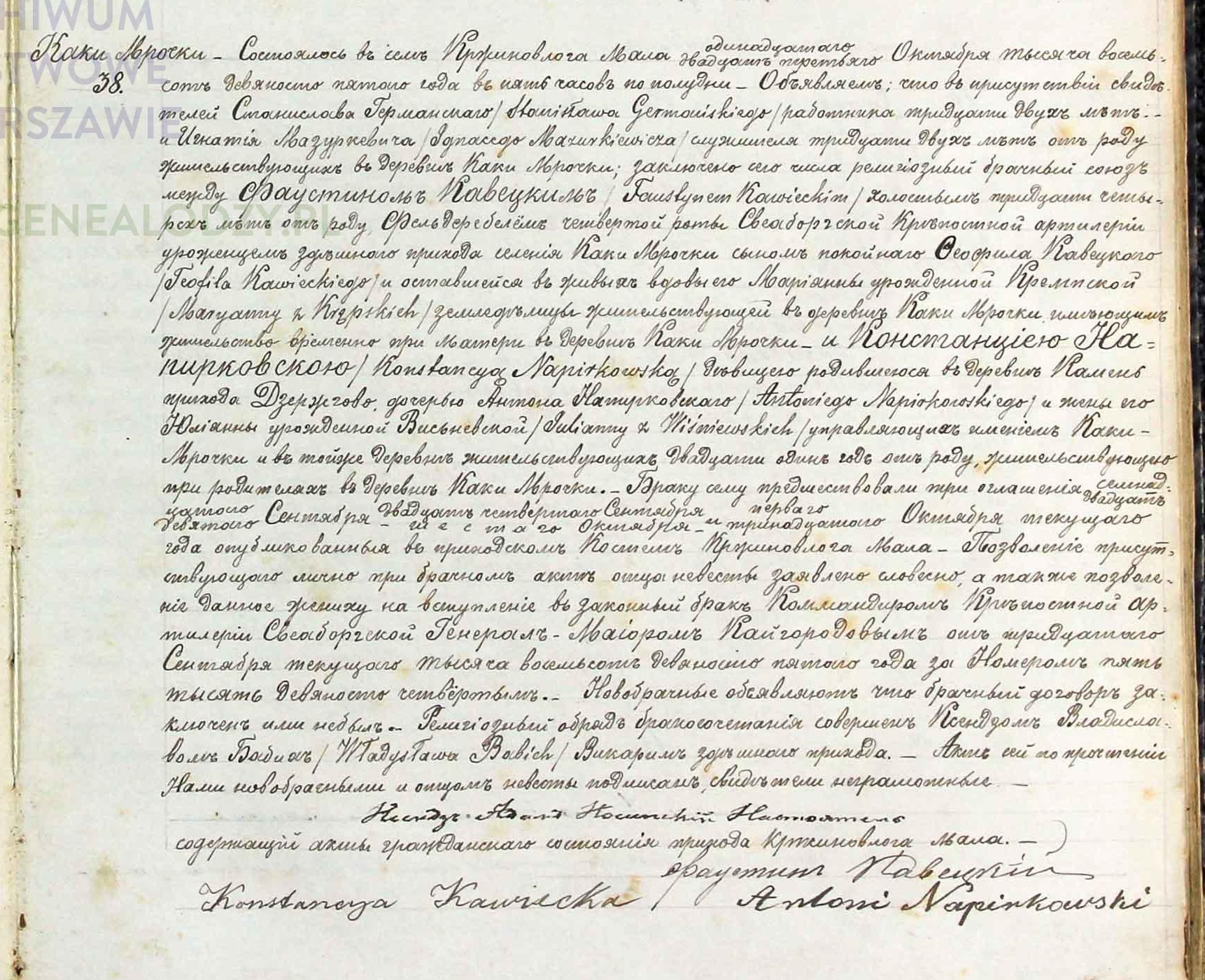| sw.1178136 | sw.1178136 | sw.557027 (sw.557027) | sw.557028 (sw.557028) | Akt małżeństwa: Krzynowłoga Mała (obecn. woj. mazow.), 38/1895 [indeks na http://geneteka.genealodzy.pl/] http://metryki.genealodzy.pl/metryki.php?op=kt&ar=6&zs=0130d&sy=1895&kt=2 [podgląd] |