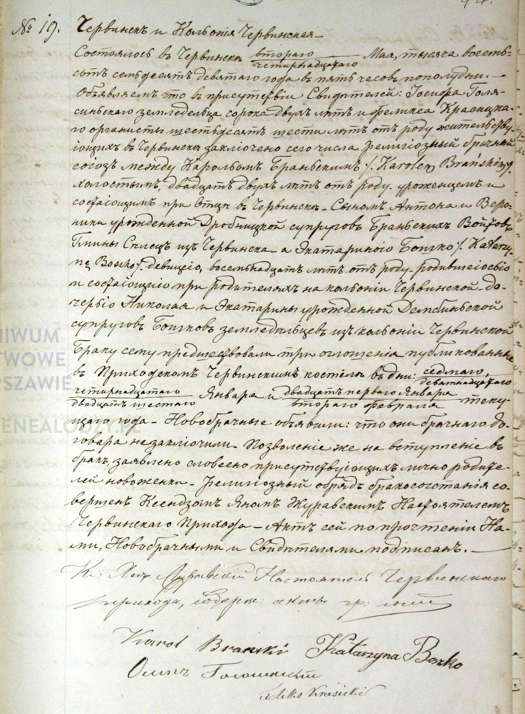 | sw.233249 | sw.914502 | sw.914503 (sw.560717) | sw.914504 (sw.560718) | Akt małżeństwa: Czerwińsk (obecn. woj. mazow.), 19/1872 [indeks na http://geneteka.genealodzy.pl/] http://metryki.genealodzy.pl/metryki.php?op=kt&ar=2&zs=0488d&sy=1872&kt=2 [podgląd] |