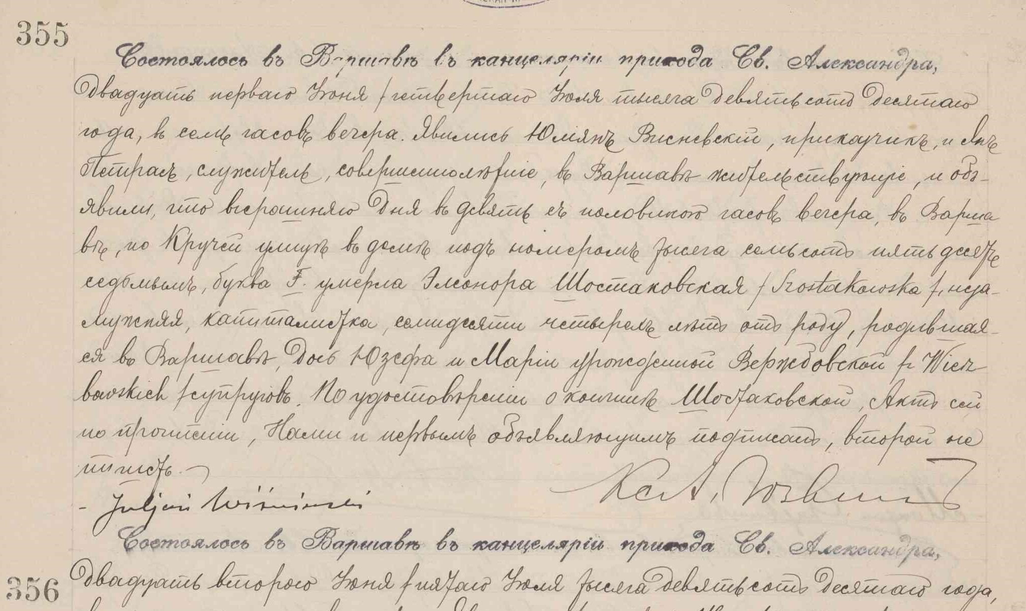 | genetekaz.11451402 | 3 | jul | 1910 | | xpar.1442 | Akt zgonu: Warszawa św. Aleksander (obecn. m. Warszawa), 355/1910 http://localhost/mjm/aleksander_1910_352-357.jpg [podglad] | | Akt zgonu obecny w bazie Geneteka |