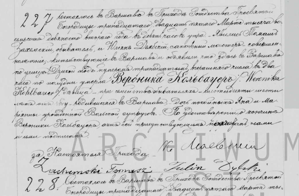 | sw.571079 | | | 1820 | | | | wychodzi za mąż | Akt zgonu: Warszawa, par. św. Andrzeja (obecn. m. Warszawa), 45/1861 [indeks na http://geneteka.genealodzy.pl/] http://szukajwarchiwach.pl/72/159/0/-/31/skan/full/8BDpwf_9SXD5OUQBFiRYKQ [podgląd] |