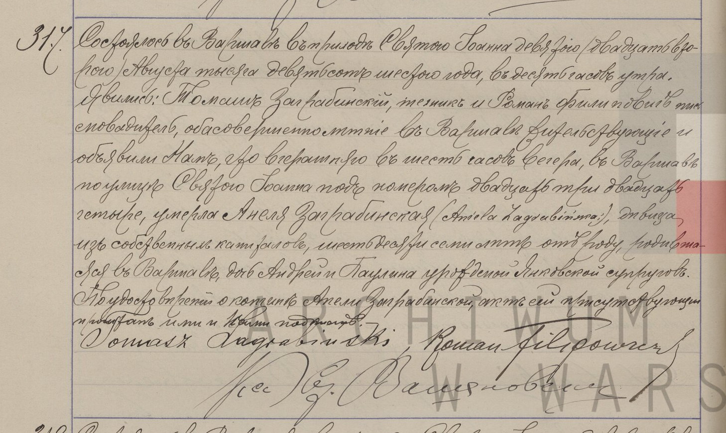 | sw.736575 | sw.736575 | sw.580712 (sw.580712) | sw.580715 (sw.580715) | Akt urodzenia: Warszawa św. Jan (obecn. m. Warszawa), 233/1857 [indeks na http://geneteka.genealodzy.pl/] http://metryki.genealodzy.pl/metryka.php?ar=8&zs=9233d&sy=141&kt=1&skan=231-234.jpg |