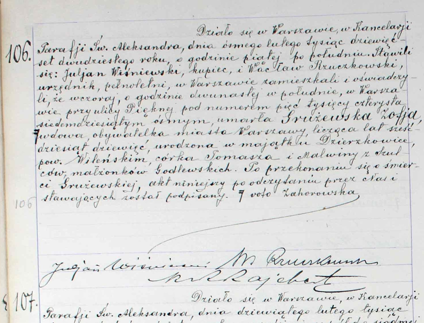 | genetekaz.11456116 | 7 | feb | 1920 | | xpar.1442 | Akt zgonu: Warszawa św. Aleksander (obecn. m. Warszawa), 106/1920 http://localhost/mjm/aleksander_1920_106-111.jpg [podglad] | | Akt zgonu obecny w bazie Geneteka |