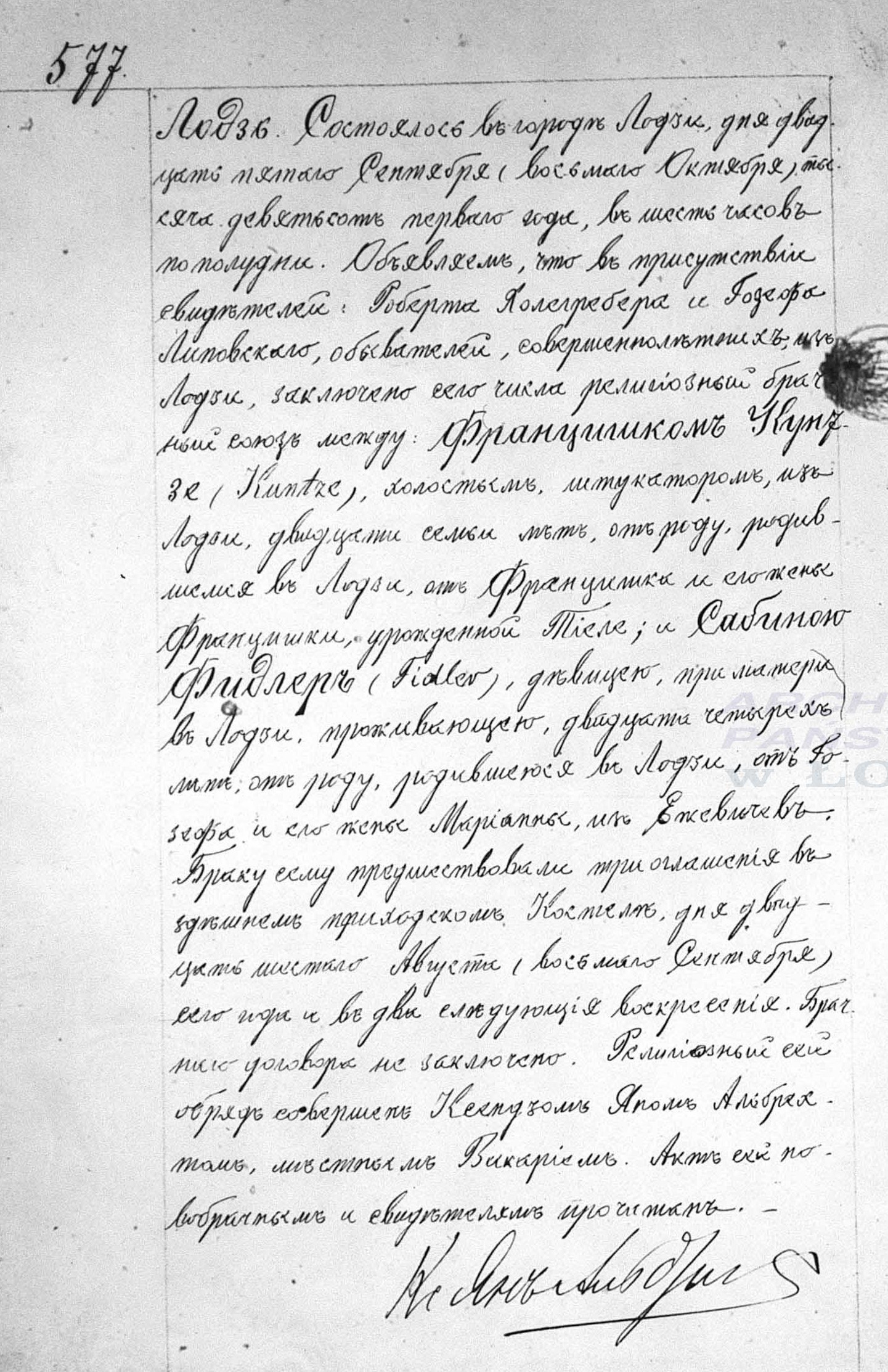 | sw.1188728 | sw.1188728 | sw.591895 (sw.591895) | sw.591898 (sw.591898) | Akt małżeństwa: Łódź NMP (obecn. woj. łódz.), 577/1901 [indeks na http://geneteka.genealodzy.pl/] http://metryki.genealodzy.pl/metryki.php?op=kt&ar=3&zs=1562d&sy=1901&kt=3 [podgląd] |