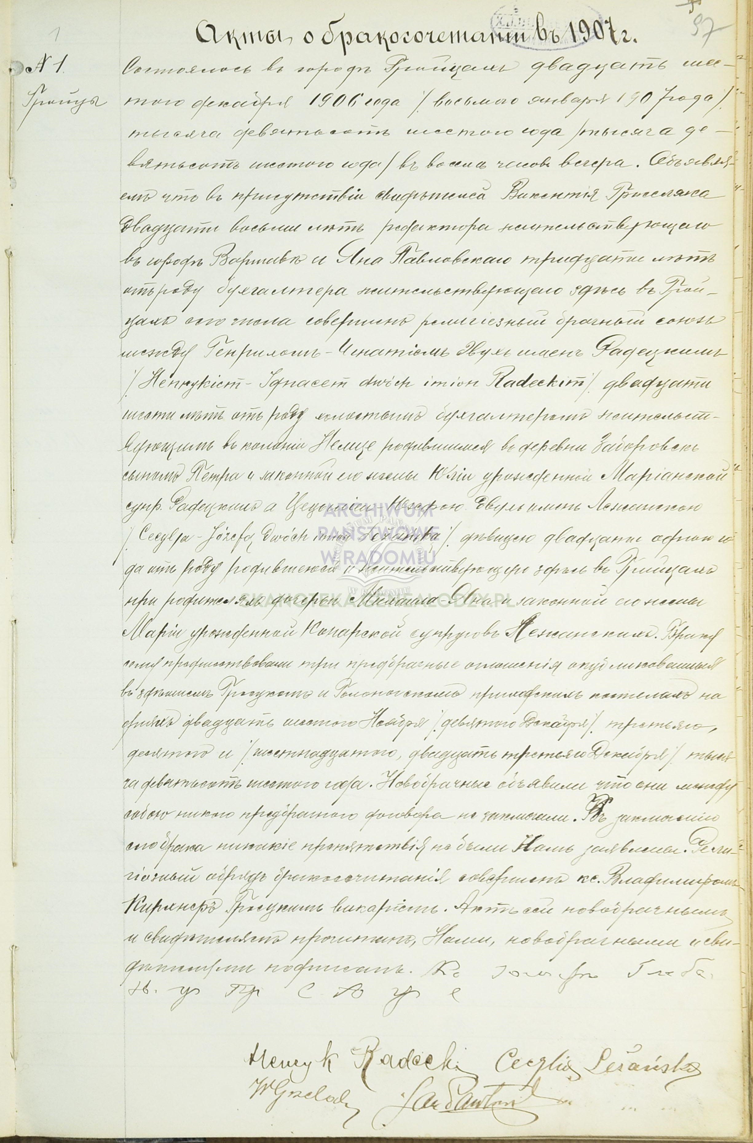 | sw.593158 | sw.593158 | sw.593159 (sw.593159) | sw.593160 (sw.593160) | Akt małżeństwa: Grójec (obecn. woj. mazow.), 1/1907 [indeks na http://geneteka.genealodzy.pl/] http://metryki.genealodzy.pl/metryki.php?op=kt&ar=4&zs=0468d&sy=1907&kt=2 [podgląd] |