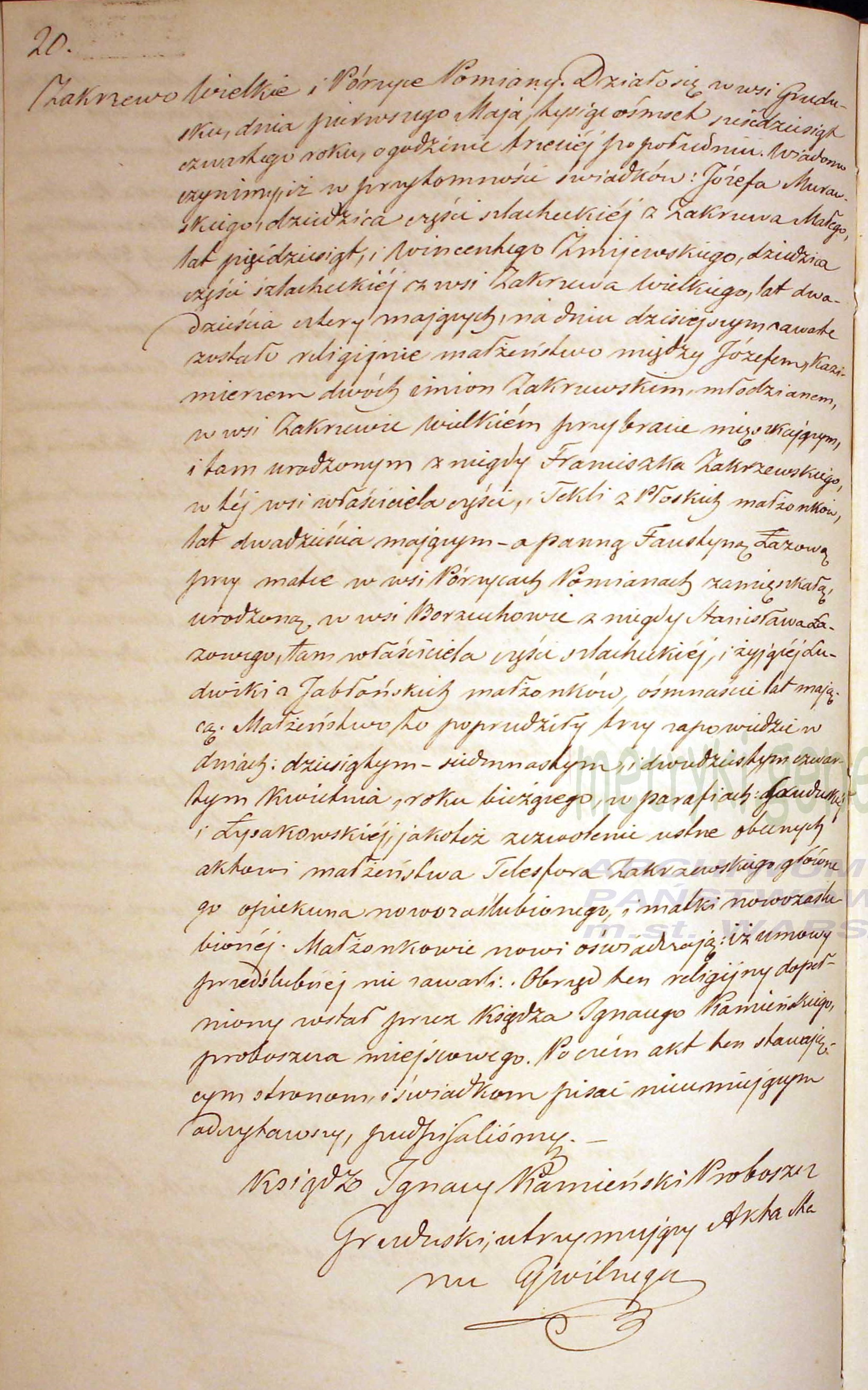 | sw.517685 | sw.595459 | sw.595460 (sw.595460) | sw.595461 (sw.595461) | Akt małżeństwa: Grudusk (obecn. woj. mazow.), 20/1864 [indeks na http://geneteka.genealodzy.pl/] http://metryki.genealodzy.pl/metryki.php?op=kt&ar=13&zs=0141d&sy=1864&kt=2 [podgląd] |