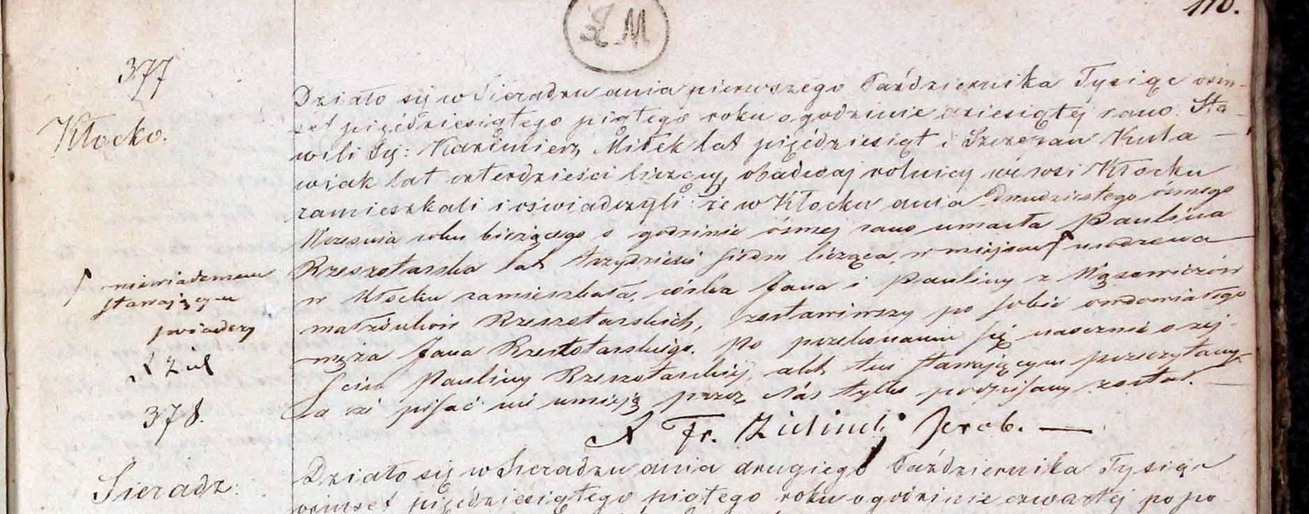 | sw.910269 | le.3228.6.2 (le.3228.6.2) | le.3228.6.6 (le.3228.6.6) | Akt zgonu: Sieradz (obecn. woj. łódz.), 377/1855 [indeks na http://geneteka.genealodzy.pl/] http://metryki.genealodzy.pl/metryka.php?ar=3&zs=1663d&sy=1855&kt=3&plik=373-380.jpg [podgląd] |