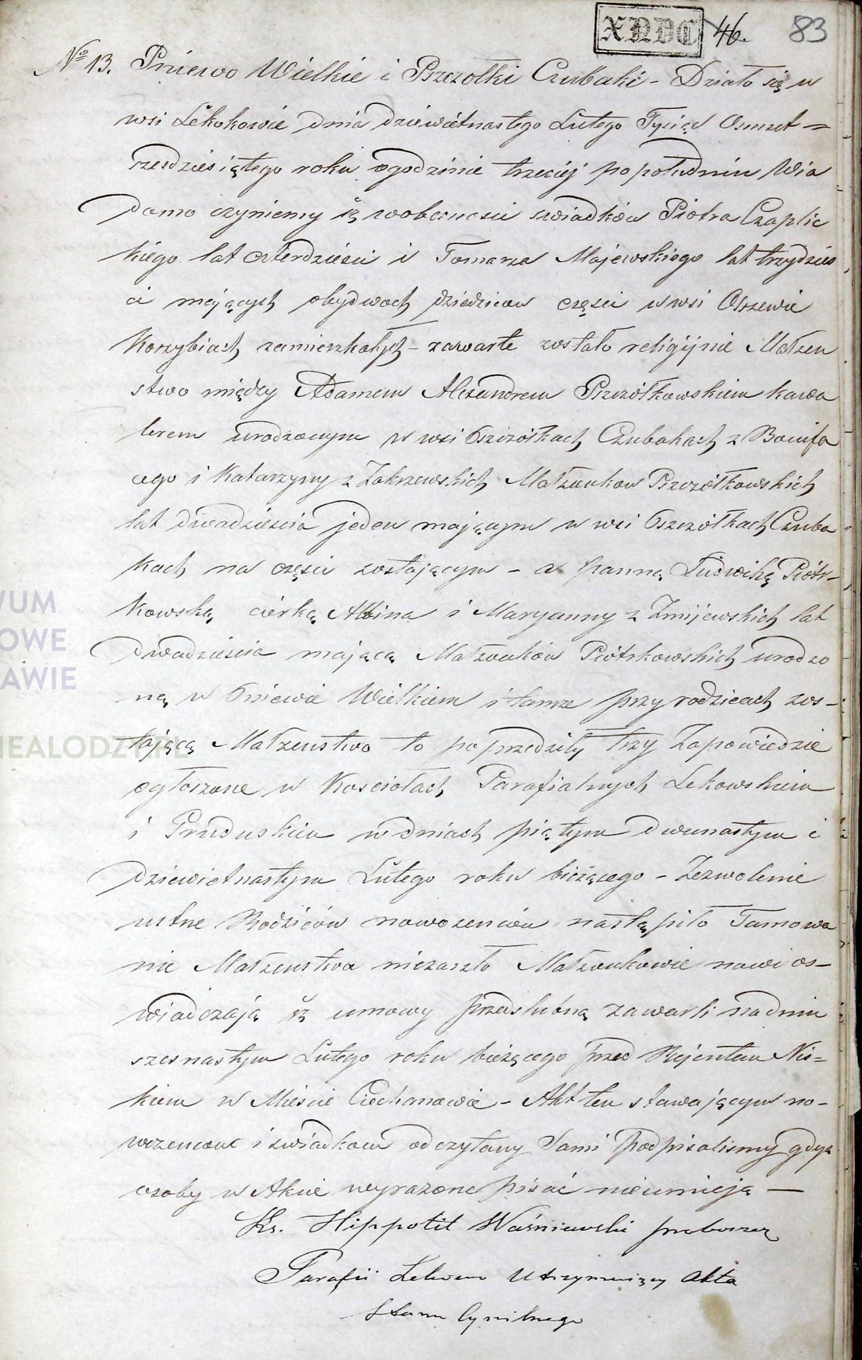 | sw.439344 | sw.596653 | sw.596654 (sw.596654) | sw.596655 (sw.596655) | Akt małżeństwa: Grudusk (obecn. woj. mazow.), 12/1841 [indeks na http://geneteka.genealodzy.pl/] http://metryki.genealodzy.pl/metryki.php?op=kt&ar=13&zs=0141d&sy=1841&kt=2 [podgląd] |