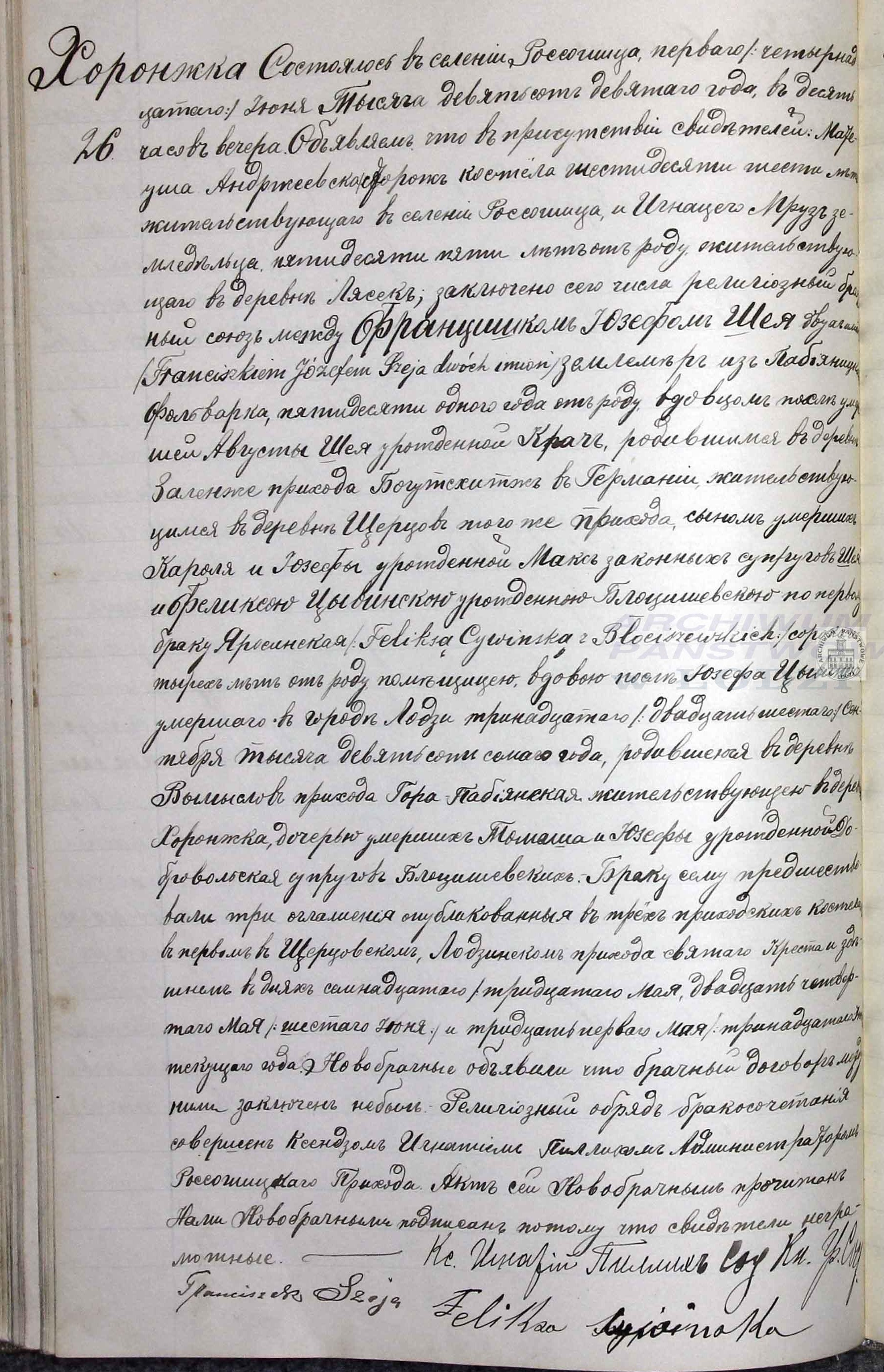 | sw.600755 | sw.750937 (sw.750937) | Akt małżeństwa: Rossoszyca (obecn. woj. łódz.), 26/1909 [indeks na http://geneteka.genealodzy.pl/] http://metryki.genealodzy.pl/metryki.php?op=kt&ar=3&zs=1648d&sy=1909&kt=2 [podgląd] | ||||||||