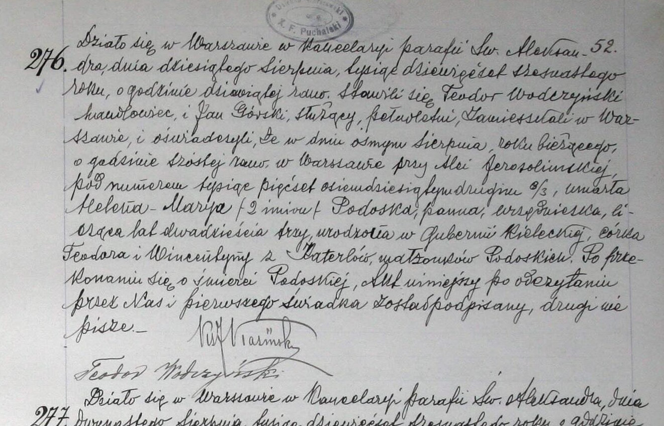 | genetekaz.11453911 | 8 | aug | 1916 | | xpar.1442 | Akt zgonu: Warszawa św. Aleksander (obecn. m. Warszawa), 276/1916 http://localhost/mjm/aleksander_1916_273-278.jpg [podglad] | | Akt zgonu obecny w bazie Geneteka |