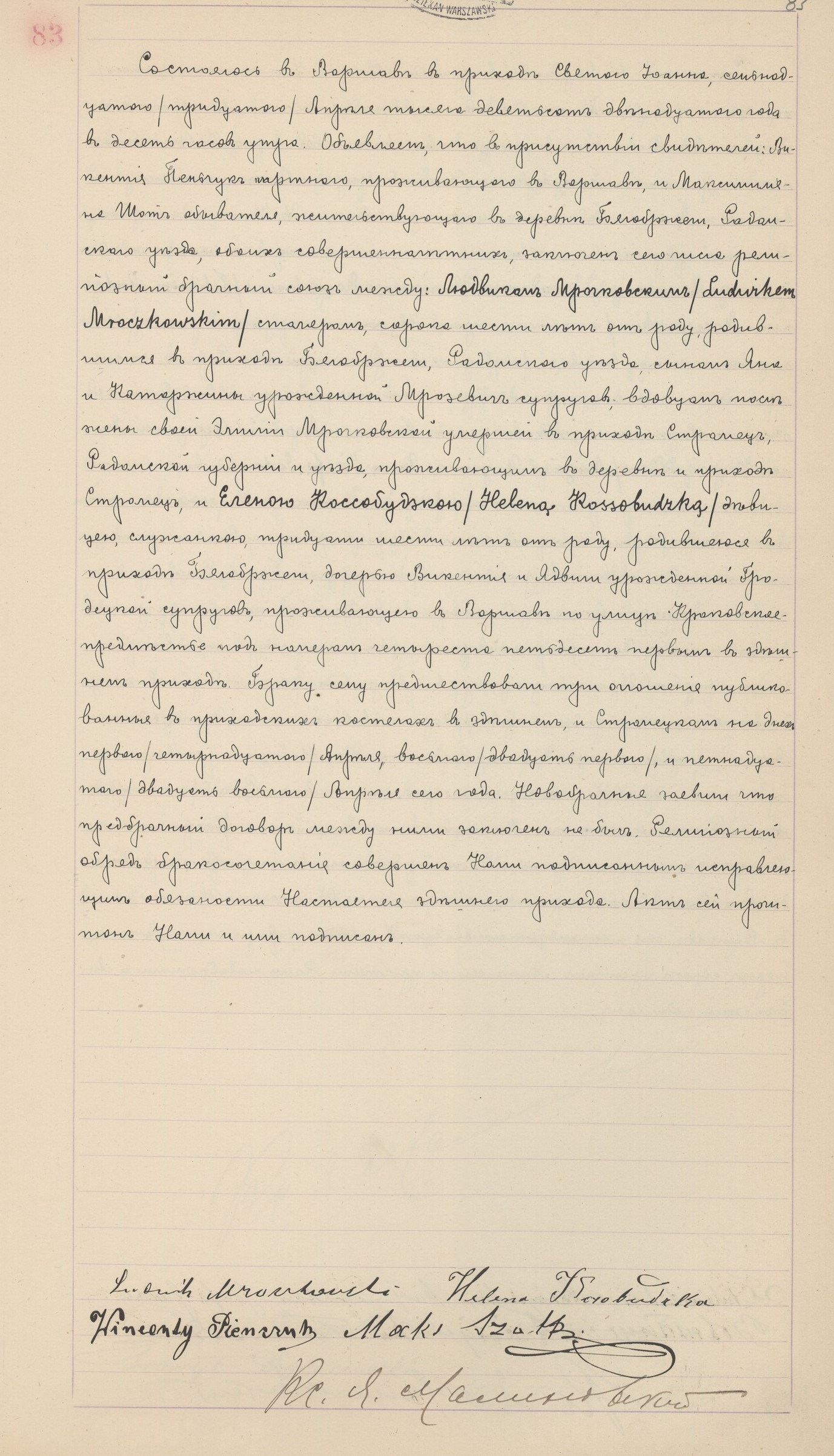 | sw.826075 | sw.826075 | sw.616994 (sw.616994) | sw.616995 (sw.616995) | Akt małżeństwa: Warszawa św. Jan (obecn. m. Warszawa), 83/1912 [indeks na http://geneteka.genealodzy.pl/] http://metryki.genealodzy.pl/metryka.php?ar=1&zs=0161d&sy=1912b&kt=2&skan=082-083.jpg [podgląd] |