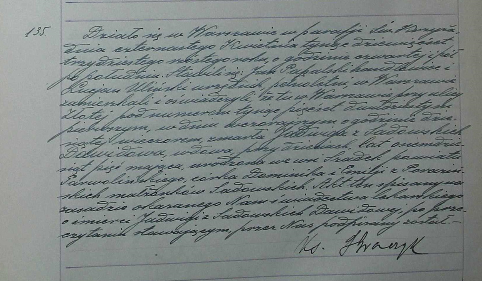 | sw.1045082 | sw.1045082 | sw.617234 (sw.617234) | sw.617235 (sw.617235) | Akt zgonu: Warszawa św. Krzyż (obecn. m. Warszawa), 135/1936 [indeks na http://geneteka.genealodzy.pl/] http://metryki.genealodzy.pl/metryki.php?op=kt&ar=1&zs=0158d&sy=1936a&kt=2 [podgląd] |