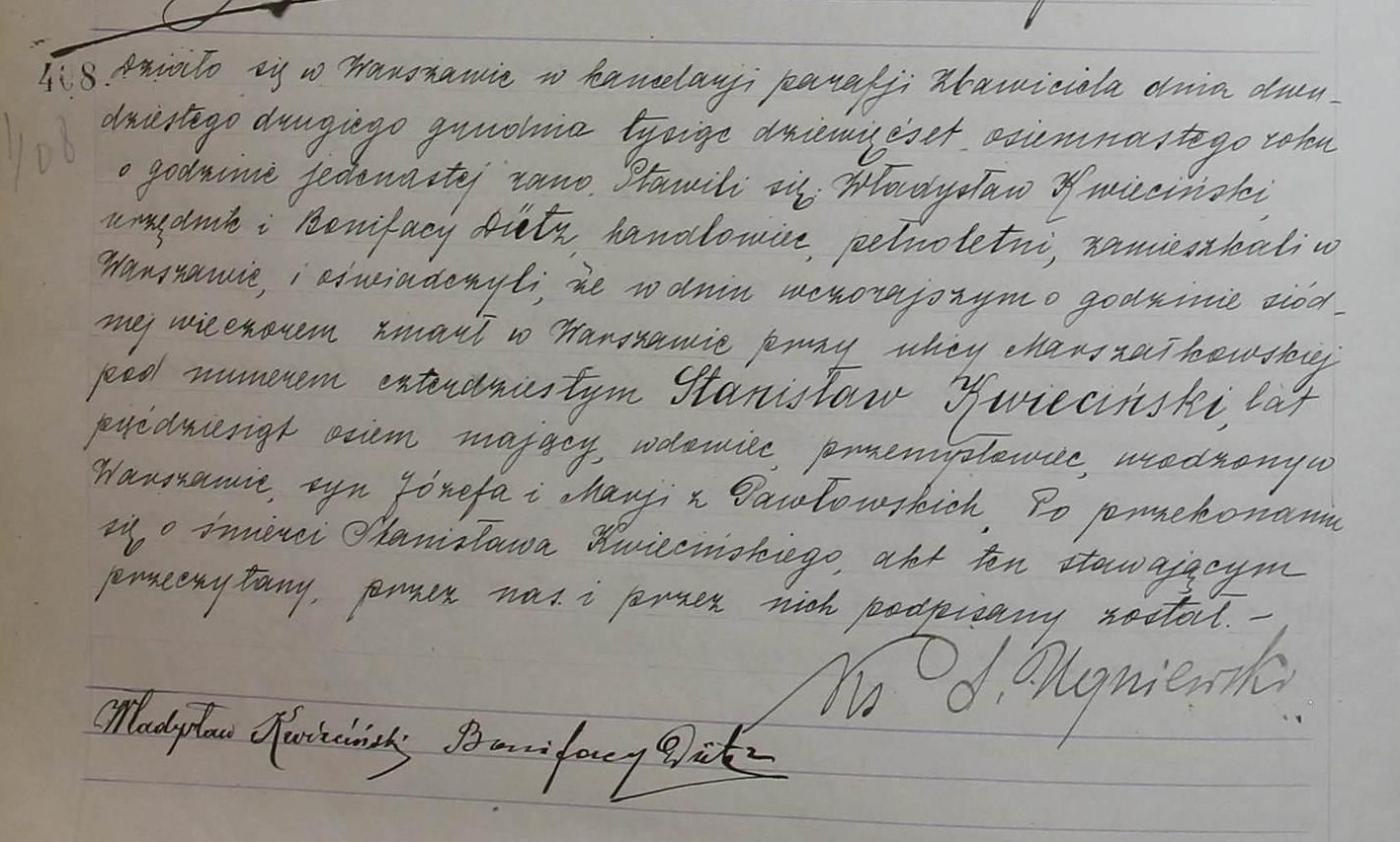 | sw.1046314 | sw.1046314 | sw.624402 (sw.624402) | sw.624403 (sw.624403) | Akt zgonu: Warszawa Najświętszego Zbawiciela (obecn. m. Warszawa), 408/1918 [indeks na http://geneteka.genealodzy.pl/] http://localhost/mjm/zbawiciel_1918_406-411.jpg [podgląd] |