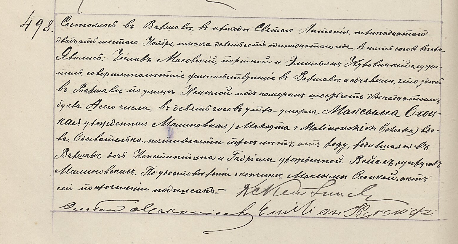 | sw.1046064 | sw.1046064 | sw.624822 (sw.624822) | sw.624823 (sw.624823) | Akt zgonu: Warszawa św. Antoni (obecn. m. Warszawa), 498/1911 [indeks na http://geneteka.genealodzy.pl/] http://localhost/mjm/antoni_1911_224_47592232.jpg [podgląd] |