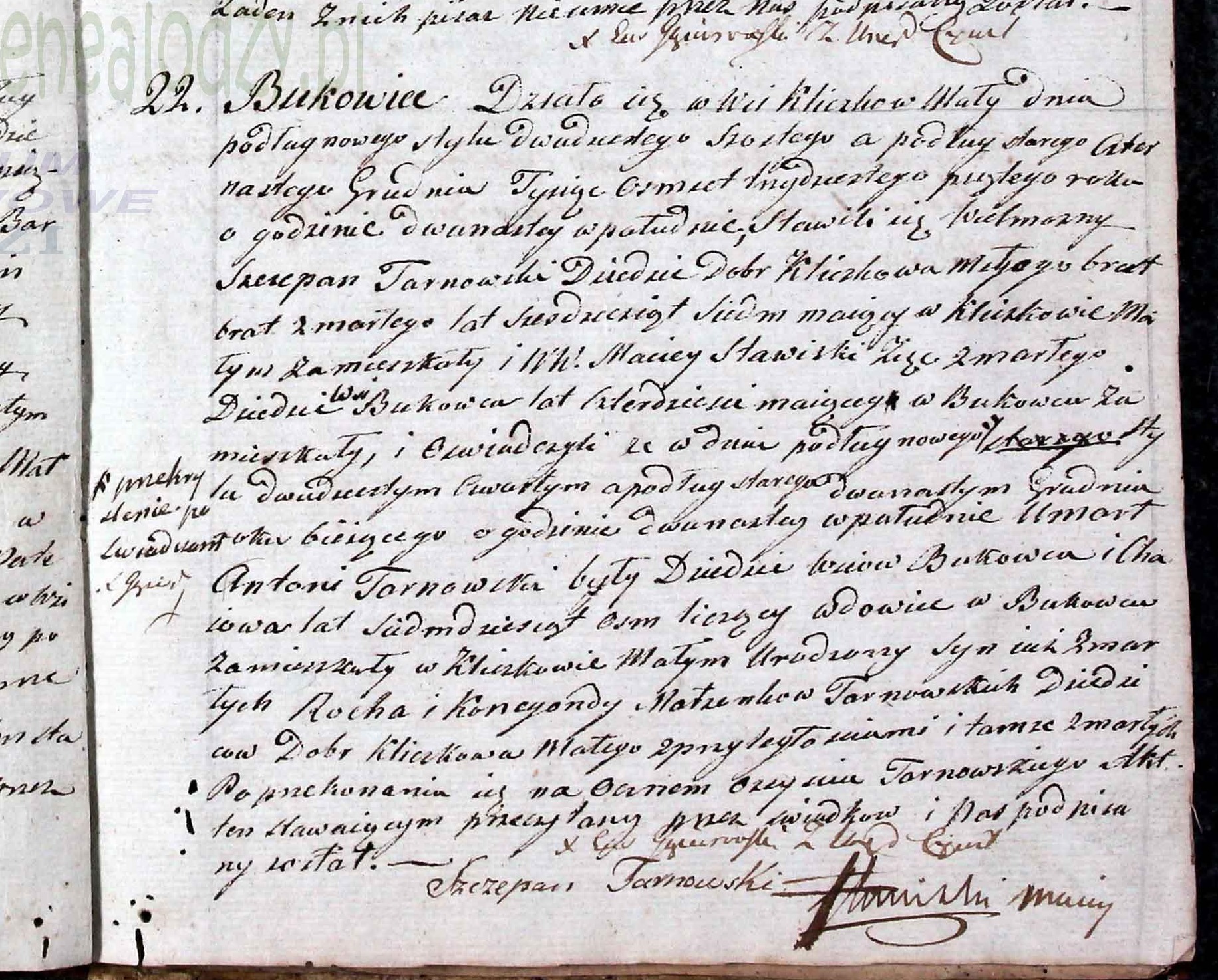 | genetekaz.5345111 | 24 | dec | 1835 | | xpar.313 | Akt zgonu: Kliczków Mały (obecn. woj. łódz.), 22/1835 http://metryki.genealodzy.pl/metryka.php?ar=3&zs=1510d&sy=1835&kt=3&plik=19-22.jpg [podglad] | | Akt zgonu obecny w bazie Geneteka |