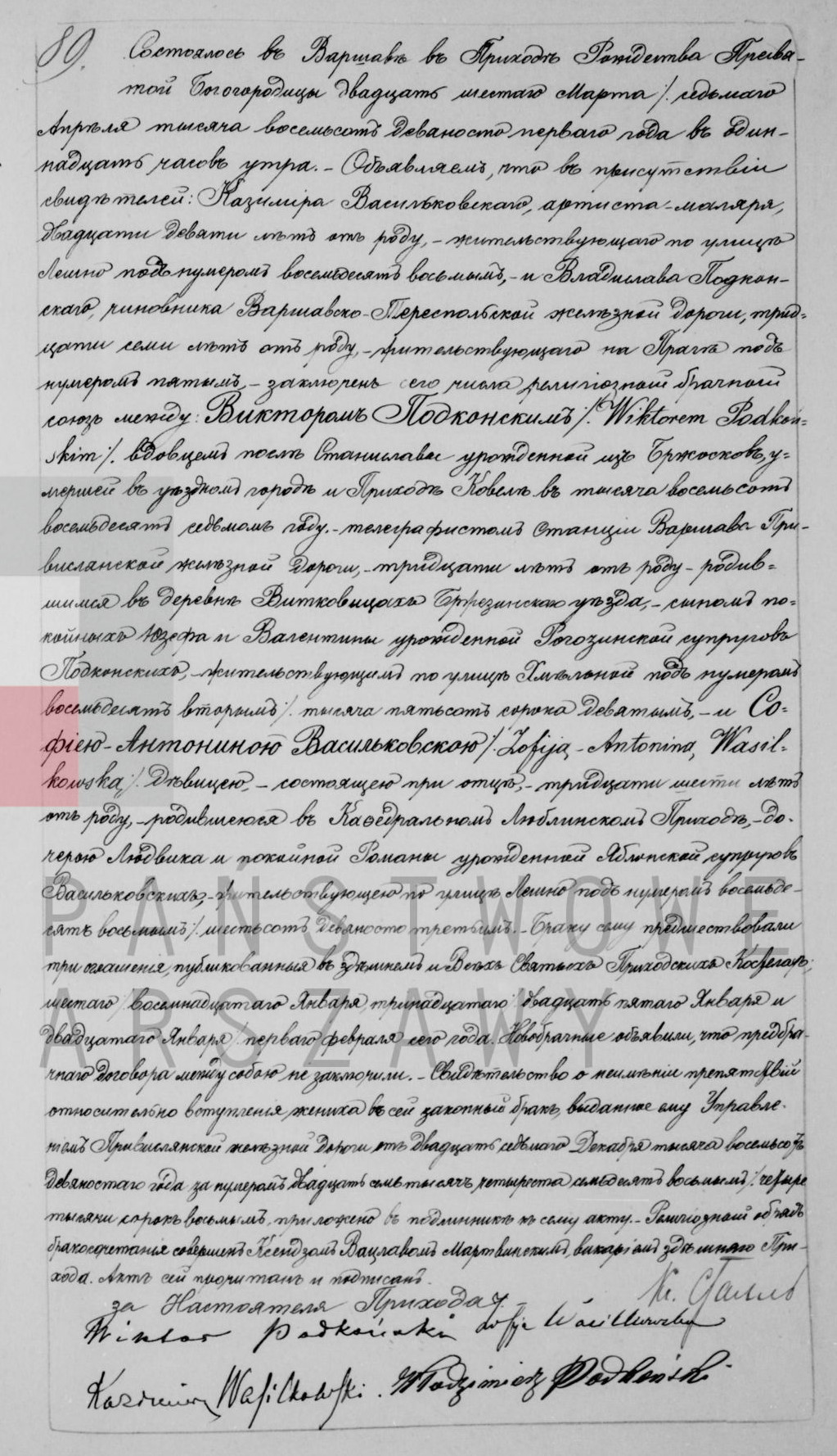 | sw.632834 | | | 1852 | | | | rodzi dziecko | Akt małżeństwa: Warszawa-Leszno Narodzenie NMP (obecn. m. Warszawa), 89/1891 [indeks na http://geneteka.genealodzy.pl/] http://metryki.genealodzy.pl/metryki.php?op=kt&ar=1&zs=1217d&sy=1891b&kt=2 [podgląd] |