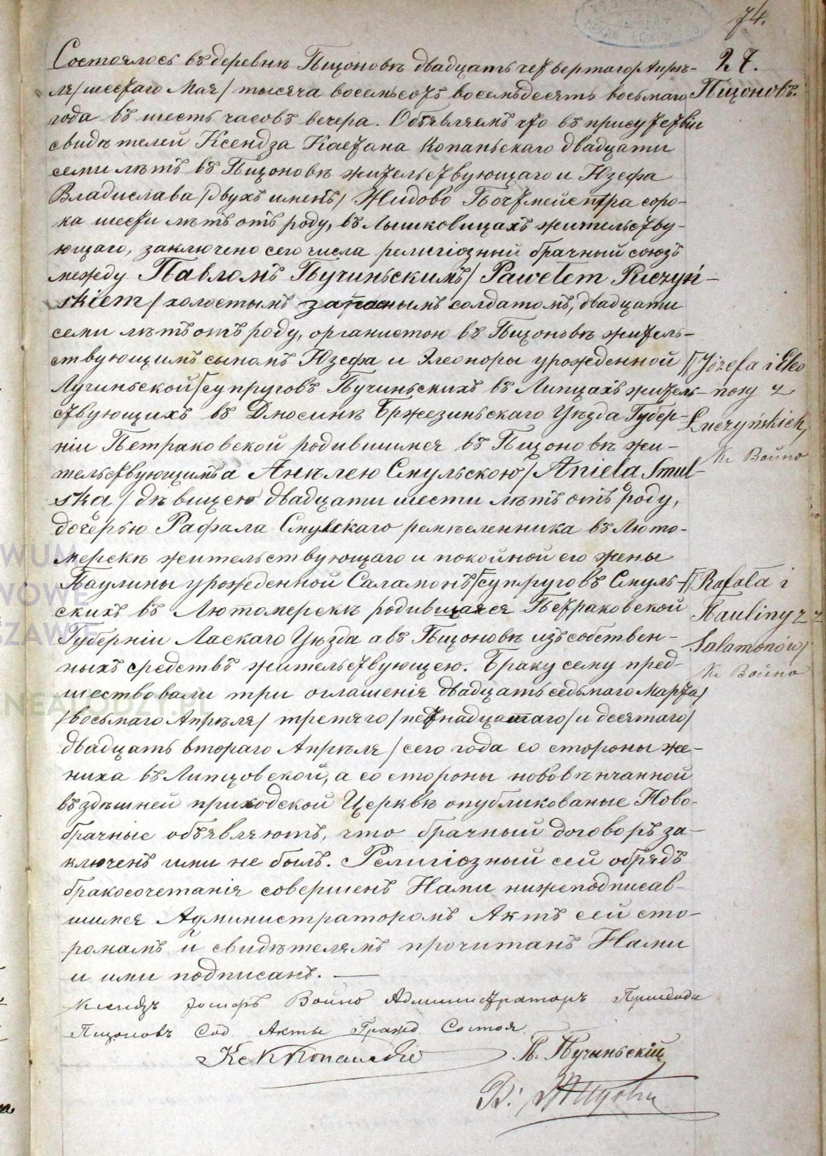 | sw.637796 | | | 1851 | | | | wychodzi za mąż | Akt małżeństwa: Lipce Reymontowskie (obecn. woj. łódz.), 18/1876 [indeks na http://geneteka.genealodzy.pl/] http://metryki.genealodzy.pl/metryka.php?ar=3&zs=1543d&sy=1876&kt=2&skan=15-18.jpg [podgląd] |