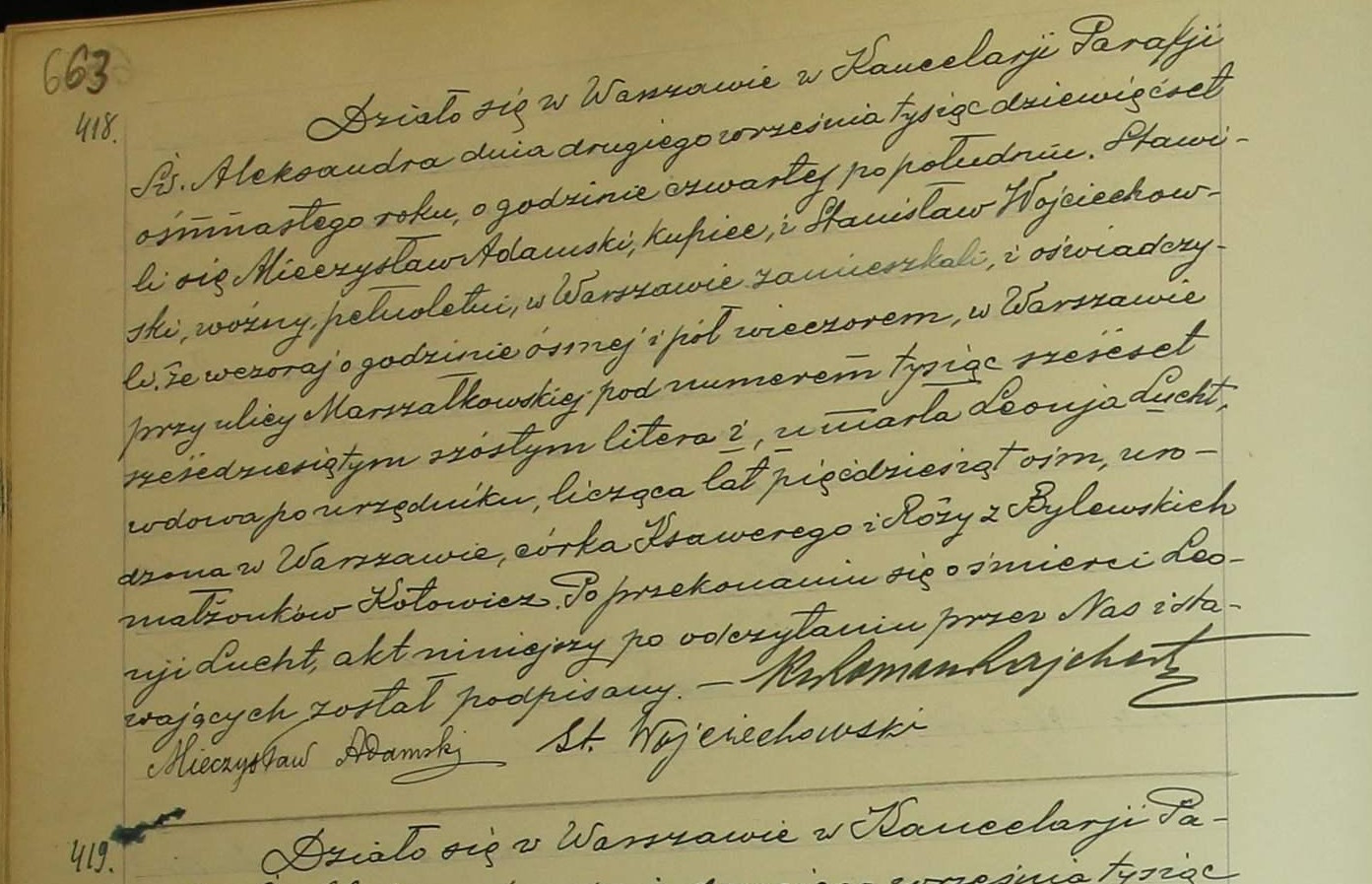 | genetekaz.11455151 | 1 | sep | 1918 | | xpar.1442 | Akt zgonu: Warszawa św. Aleksander (obecn. m. Warszawa), 418/1918 http://localhost/mjm/aleksander_1918_418-423.jpg [podglad] | | Akt zgonu obecny w bazie Geneteka |