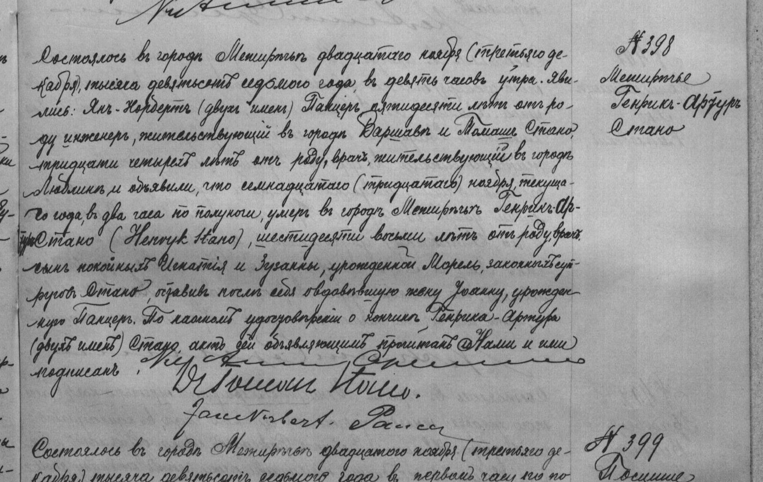| lubgensz.1173427 | 30 | nov | 1907 | | xpar.188 | Akt zgonu: Międzyrzec Podlaski (obecn. woj. lubel.), 398/1907 http://www.szukajwarchiwach.pl/35/1879/0/2.4/125/skan/full/XZEMtN266EUPpJUDCrgPkQ [podglad] | | Akt zgonu obecny w bazie Lubgens |