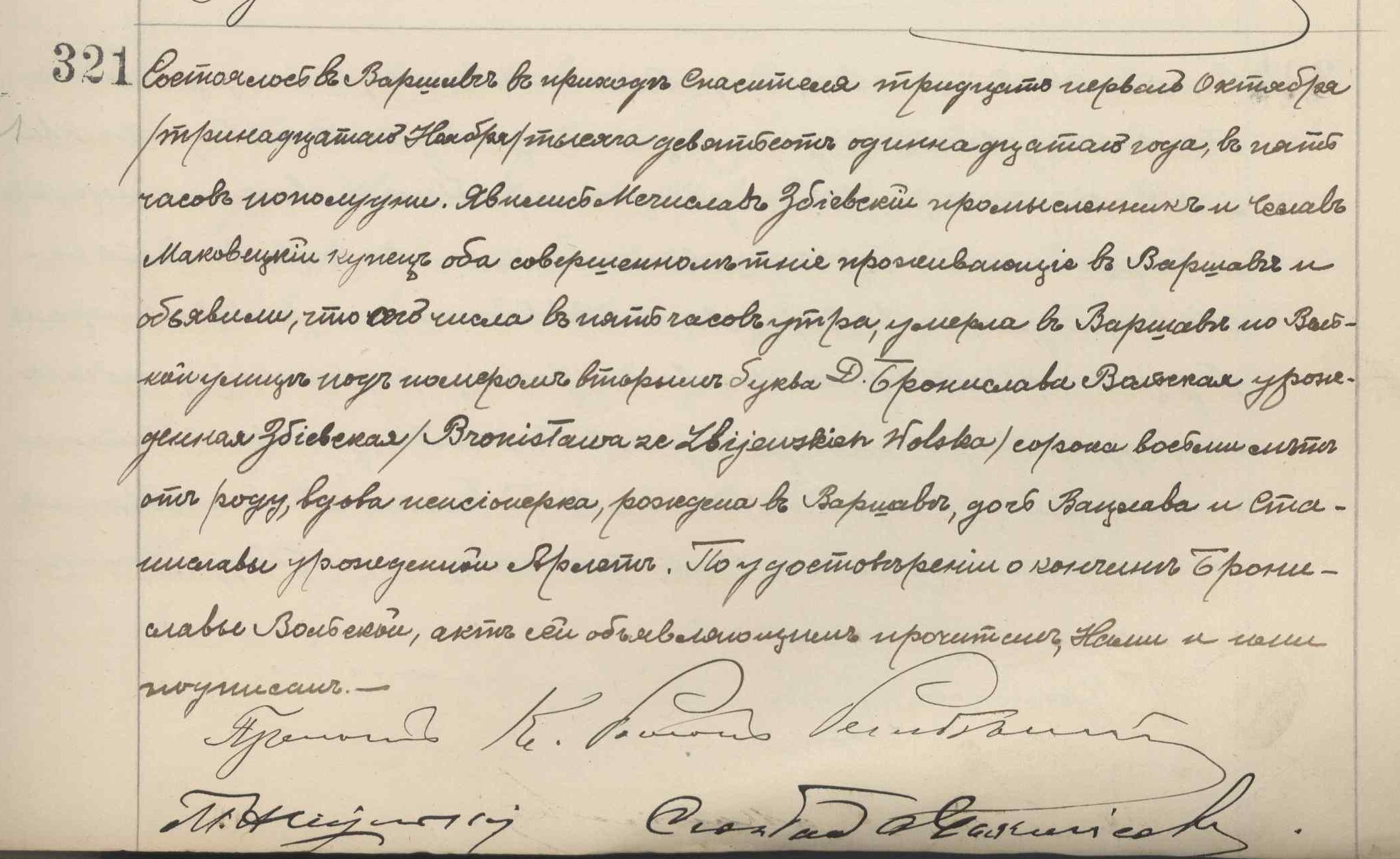 | sw.1046203 | sw.1046203 | sw.671798 (sw.671798) | sw.671799 (sw.671799) | Akt zgonu: Warszawa Najświętszego Zbawiciela (obecn. m. Warszawa), 321/1911 [indeks na http://geneteka.genealodzy.pl/] http://metryki.genealodzy.pl/metryki.php?op=kt&ar=1&zs=3684d&sy=1911&kt=3 [podgląd] |