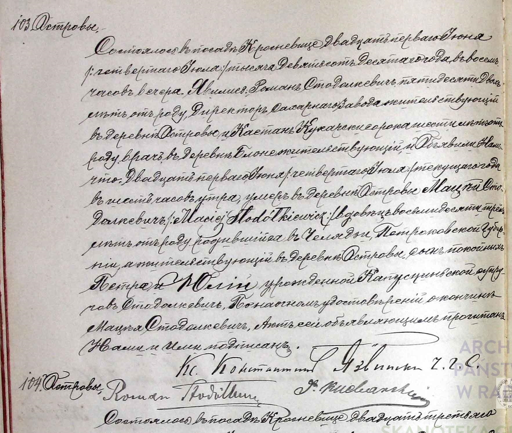| sw.672551 | m | Maciej | | | | | Stodołkiewicz | | | | | Akt małżeństwa: Płock (obecn. woj. mazow.), 109/1889 [indeks na http://geneteka.genealodzy.pl/] http://szukajwarchiwach.pl/50/155/0/-/124#tabSkany [podgląd] |