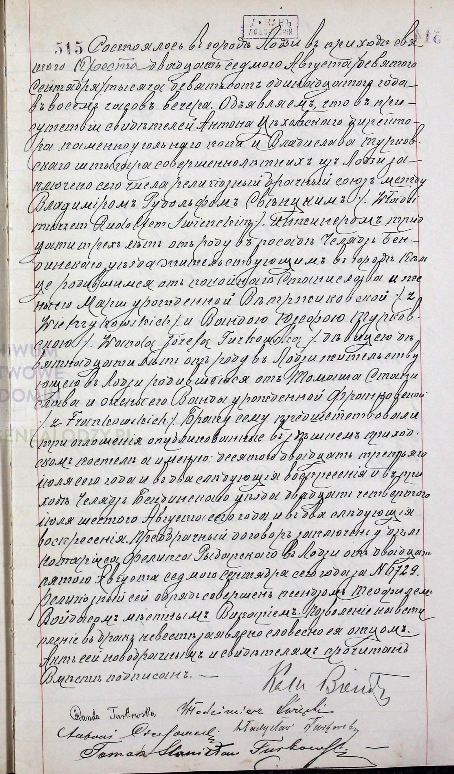 | sw.674757 | sw.218833 (sw.218833) | sw.218834 (sw.218834) | Akt małżeństwa: Łódź św. Krzyż (obecn. woj. łódz.), 285/1887 [indeks na http://geneteka.genealodzy.pl/] http://metryki.genealodzy.pl/metryki.php?op=kt&ar=3&zs=1563d&sy=1887&kt=3 [podgląd] |