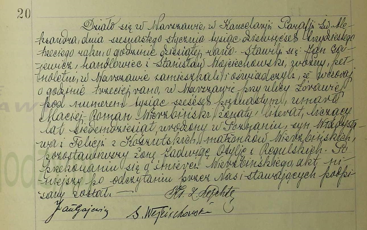 | sw.67977 | sw.67978 (sw.67978) | 6 | jul | 1912 | xpar.1442 | Akt małżeństwa: Warszawa św. Aleksander (obecn. m. Warszawa), rok 1912, nr aktu 287 [indeks na http://geneteka.genealodzy.pl/] http://metryki.genealodzy.pl/metryka.php?ar=1&zs=0162d&sy=1912b&kt=2&skan=286-287.jpg [podgląd] | Akt ślubu obecny w bazie Geneteka |