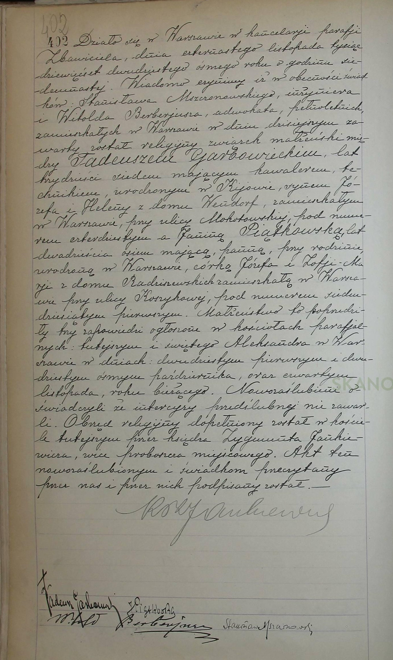 | sw.1416673 | sw.1416673 | sw.1416674 (sw.684217) | sw.1416675 (sw.684218) | Akt małżeństwa: Warszawa Najświętszego Zbawiciela (obecn. m. Warszawa), 402/1928 [indeks na http://geneteka.genealodzy.pl/] http://metryki.genealodzy.pl/metryki.php?op=kt&ar=1&zs=3684d&sy=1928b&kt=1 [podgląd] |