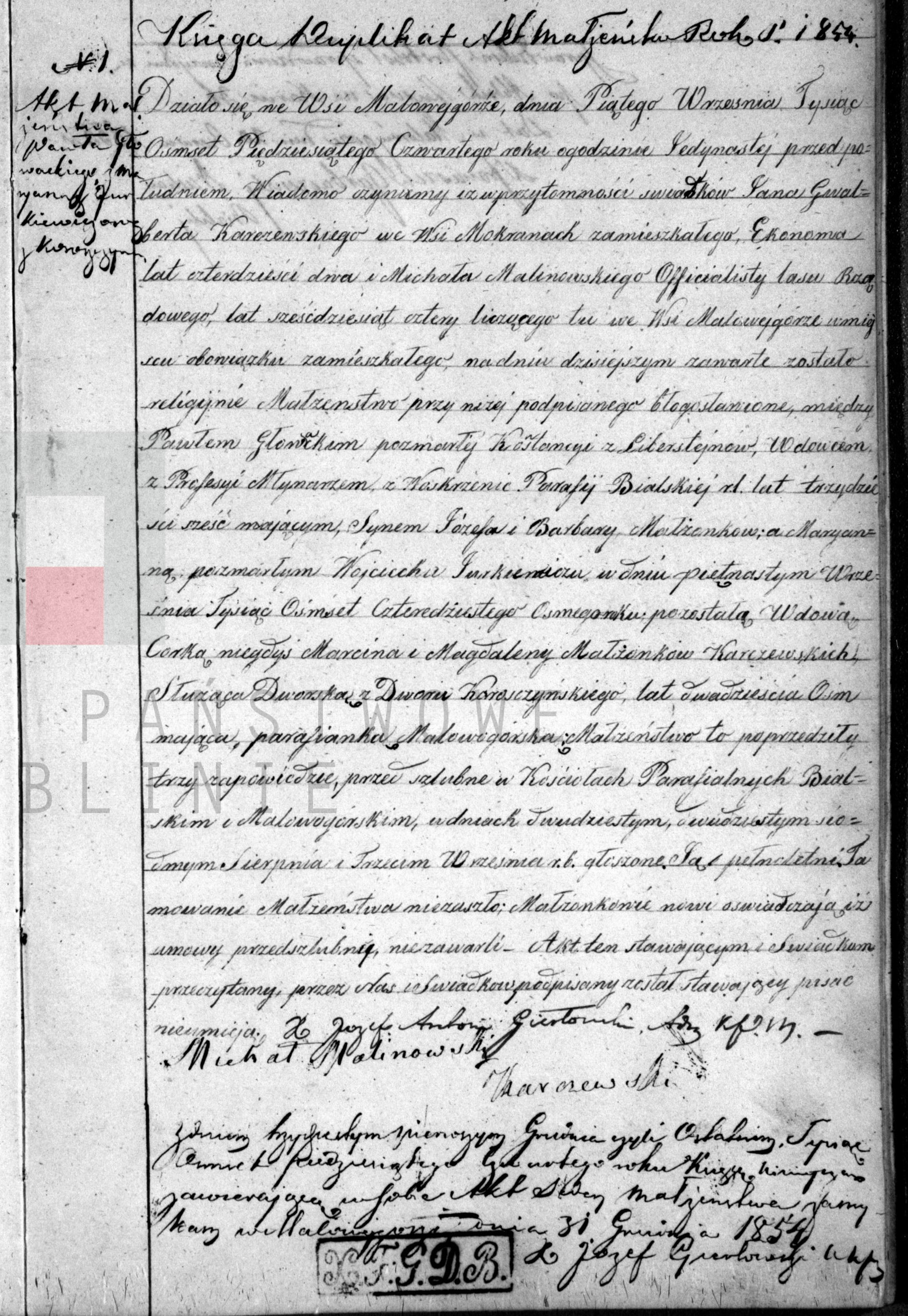 | sw.699843 | sw.699844 (sw.699844) | sw.699845 (sw.699845) | Akt małżeństwa: Malowa Góra (obecn. woj. lubel.), 1/1854 [indeks na http://geneteka.genealodzy.pl/] http://szukajwarchiwach.pl/35/1874/0/2.4/44/skan/full/BmI6c_3tRbCt4vKfa38kYw [podgląd] |