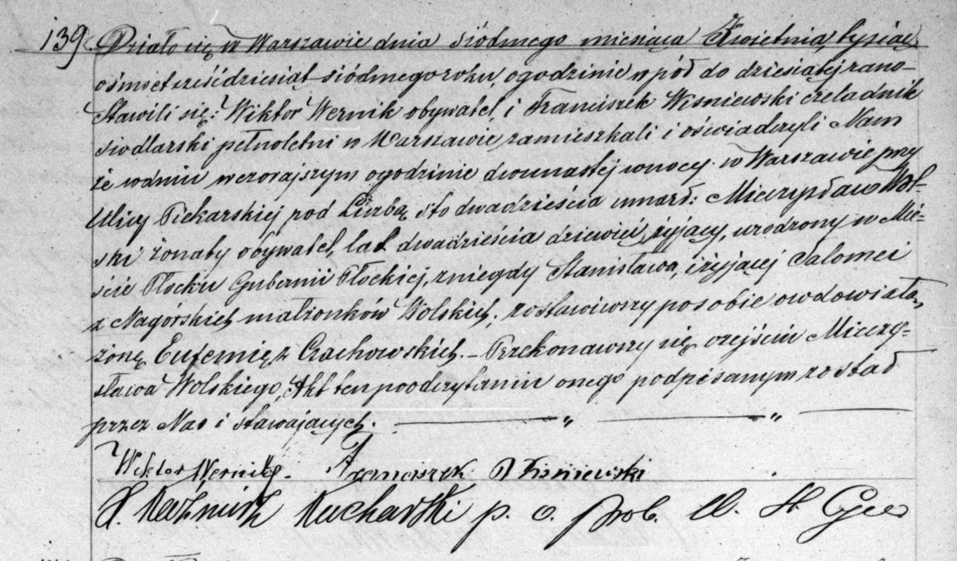 | sw.312494 | sw.171286 (sw.171286) | sw.171287 (sw.171287) | Akt urodzenia: Płock (obecn. woj. mazow.), 221/1838 [indeks na http://geneteka.genealodzy.pl/] http://szukajwarchiwach.pl/50/155/0/-/24#tabSkany |