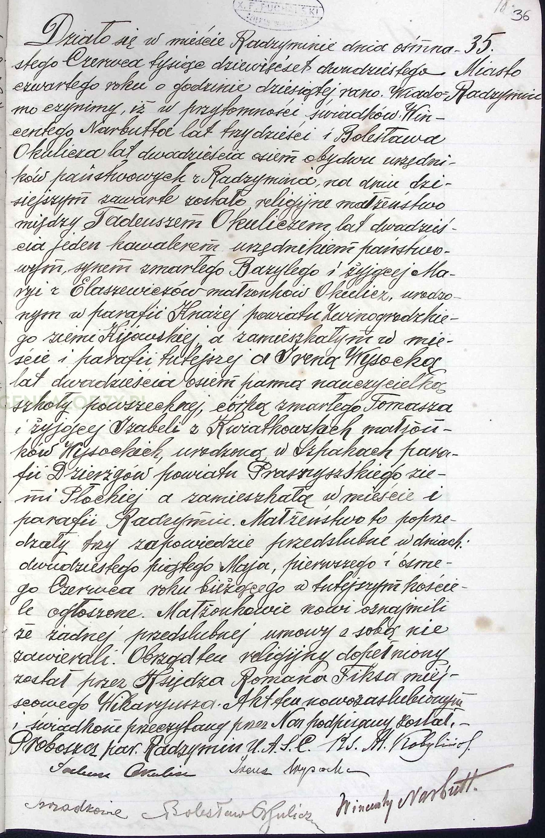 | sw.714108 | sw.714109 (sw.223569) | sw.714110 (sw.223570) | Akt małżeństwa: Ciechanów (obecn. woj. mazow.), 59/1888 [indeks na http://geneteka.genealodzy.pl/] http://metryki.genealodzy.pl/metryka.php?ar=13&zs=0136d&sy=1888&kt=2&plik=058-059.jpg#zoom=1&x=0&y=0 [podgląd] |