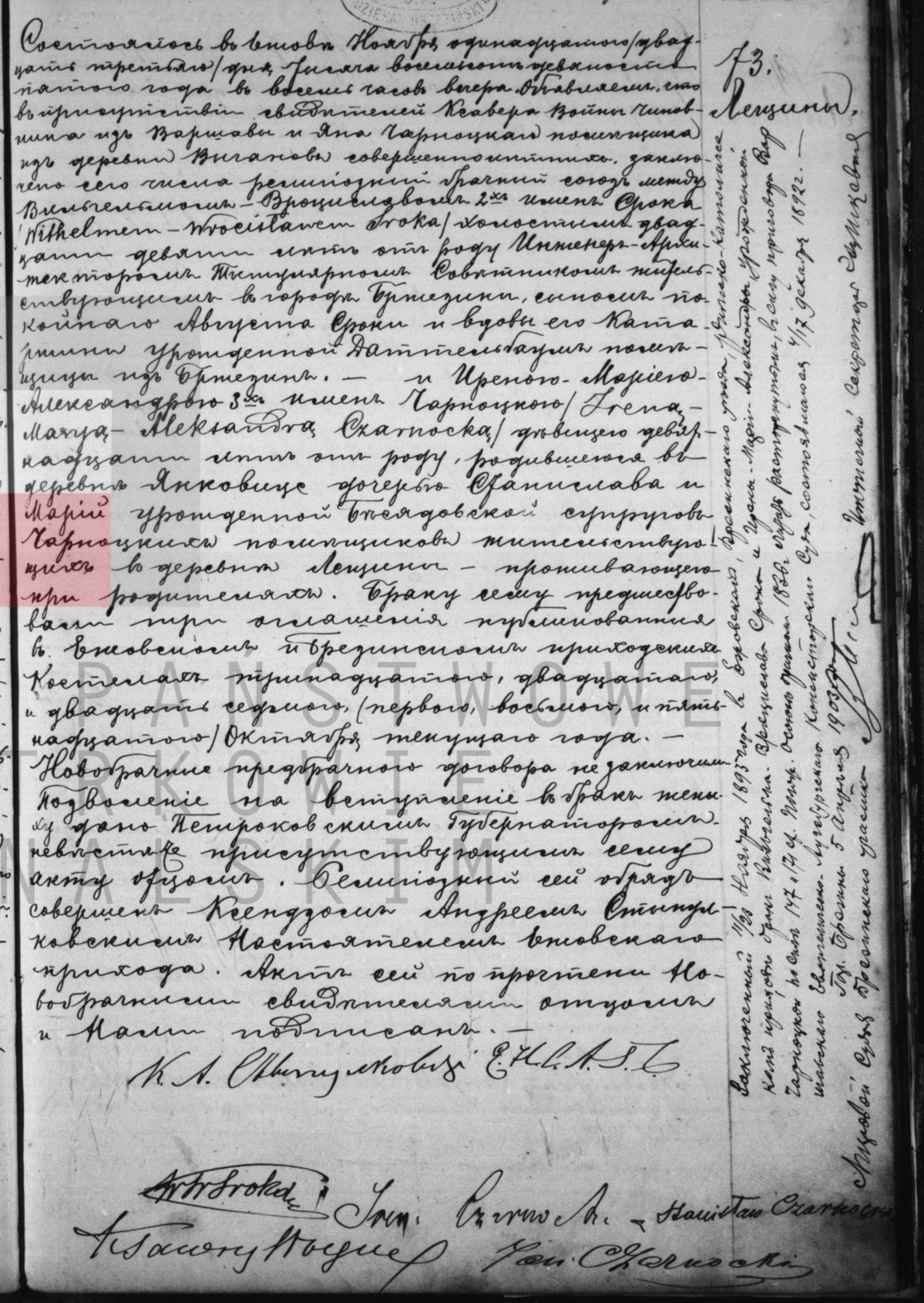 | sw.597491 | sw.597491 | sw.408939 (sw.408939) | sw.408940 (sw.719907) | Akt małżeństwa: Jeżów (obecn. woj. łódz.), 73/1895 [indeks na http://geneteka.genealodzy.pl/] http://szukajwarchiwach.pl/49/448/0/-/15/skan/full/PPS8DqL4OyPs7D1LExxx-w [podgląd] |
