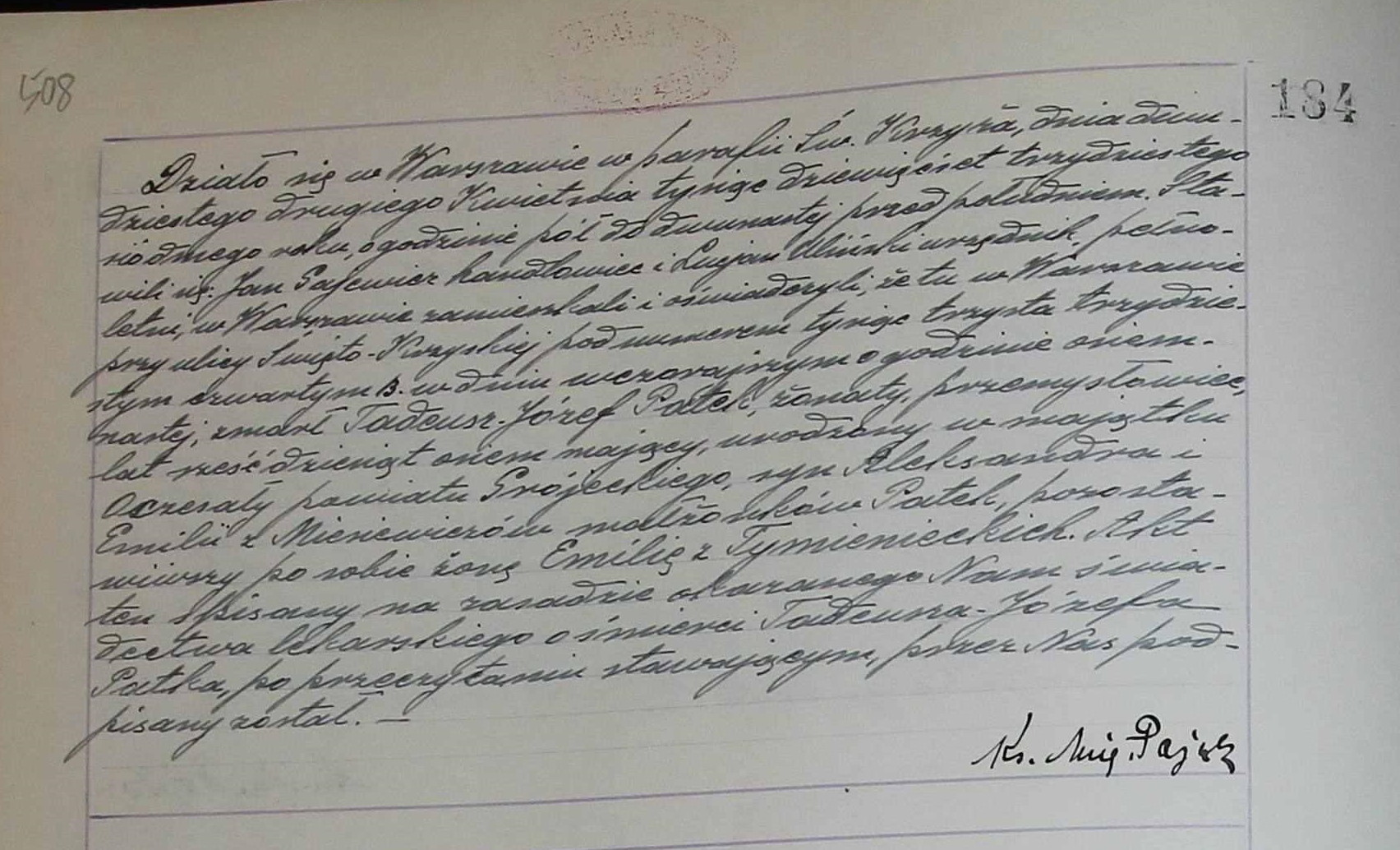 | sw.757162 | psb.21807.2 (psb.21807.2) | psb.21807.3 (psb.21807.3) | Akt małżeństwa: Warszawa Przemienienie Pańskie (obecn. m. Warszawa), 84/1897 [indeks na http://geneteka.genealodzy.pl/] http://metryki.genealodzy.pl/metryki.php?op=kt&ar=1&zs=1216d&sy=1897&kt=2 [podgląd] |