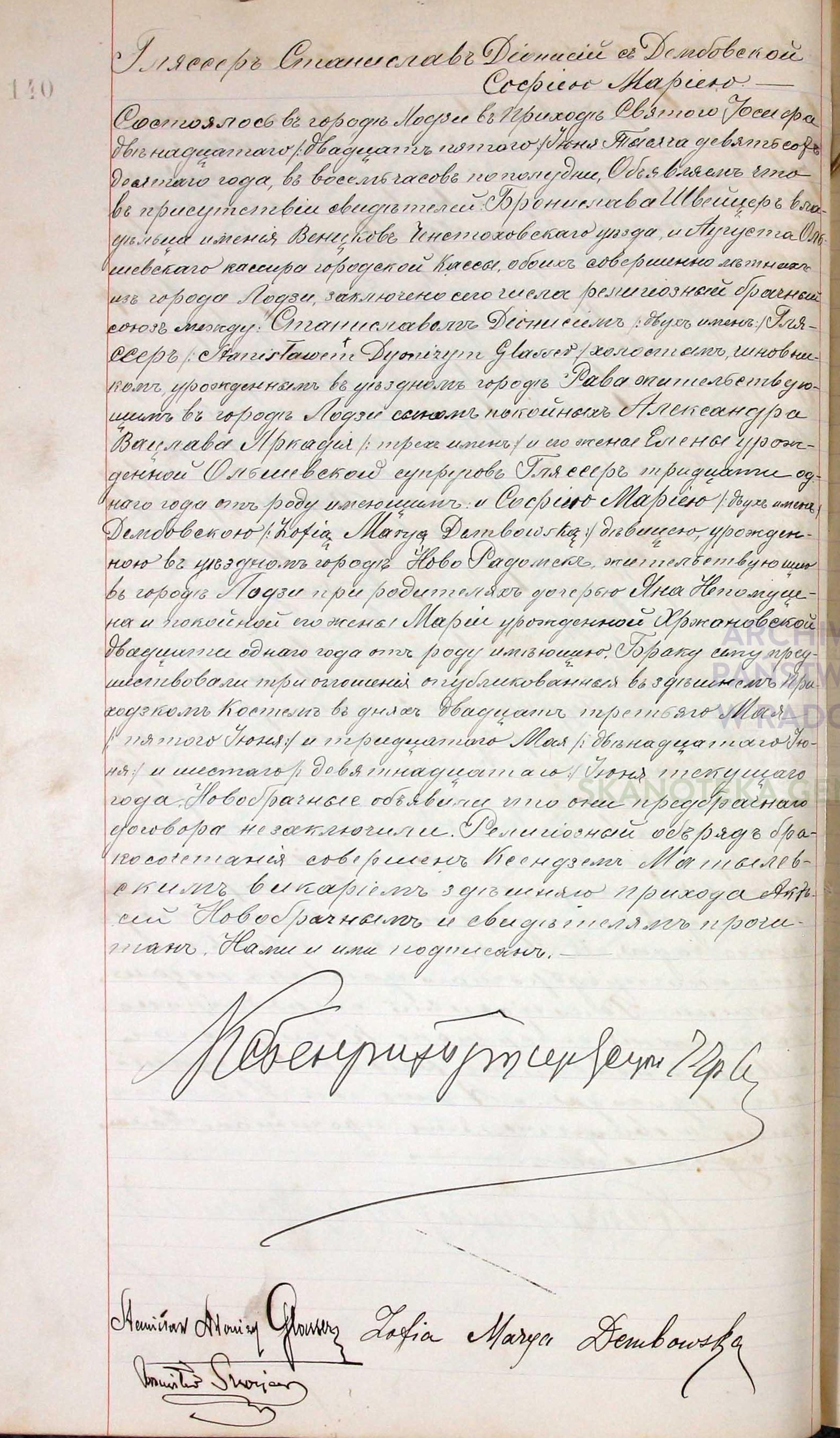 | sw.770483 | sw.770483 | sw.770484 (sw.770484) | sw.770485 (sw.770485) | Akt małżeństwa: Łódź św. Józef (obecn. woj. łódz.), 140/1910 [indeks na http://geneteka.genealodzy.pl/] http://metryki.genealodzy.pl/metryki.php?op=kt&ar=3&zs=2474d&sy=1910&kt=2 [podgląd] |