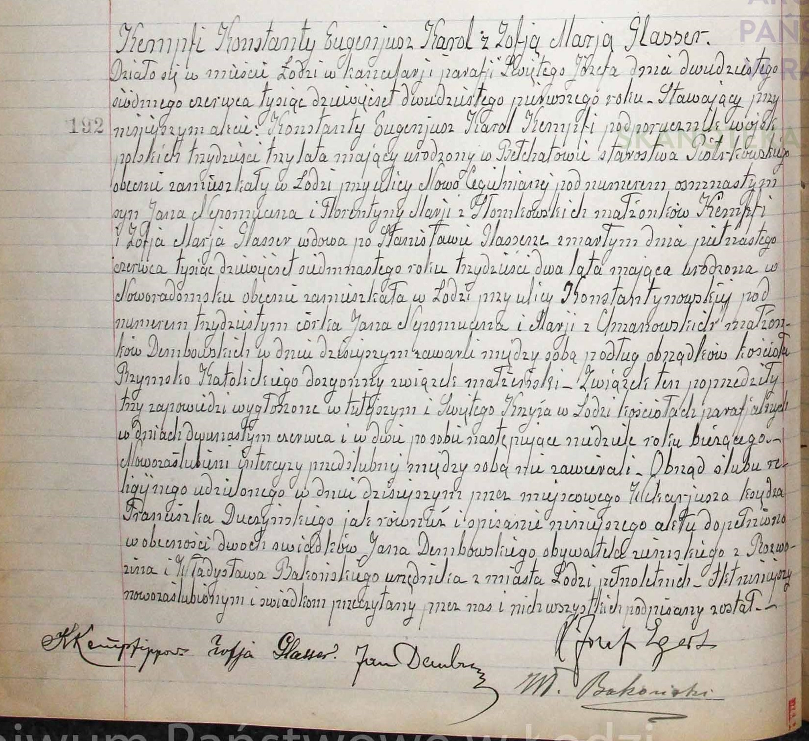 | sw.770483 | sw.957790 | sw.957791 (sw.770484) | sw.957792 (sw.770485) | Akt małżeństwa: Łódź św. Józef (obecn. woj. łódz.), 192/1921 [indeks na http://geneteka.genealodzy.pl/] http://metryki.genealodzy.pl/metryki.php?op=kt&ar=3&zs=2474d&sy=1921b&kt=1 [podgląd] |