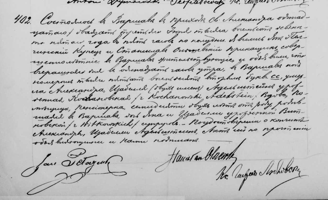 | genetekaz.11334684 | 22 | jun | 1895 | xpar.1442 | Akt zgonu: Warszawa św. Aleksander (obecn. m. Warszawa), 402/1895 http://localhost/mjm/aleksander_1895_158_168_0297.jpg [podglad] | Akt zgonu obecny w bazie Geneteka | ||