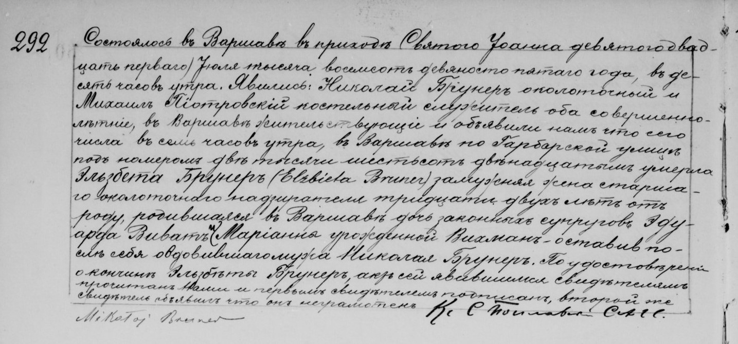 | genetekaz.11293059 | 21 | jul | 1895 | | xpar.1448 | Akt zgonu: Warszawa św. Jan (obecn. m. Warszawa), 292/1895 http://metryki.genealodzy.pl/metryki.php?op=kt&ar=1&zs=0161d&sy=1895c&kt=3 [podglad] | | Akt zgonu obecny w bazie Geneteka |
