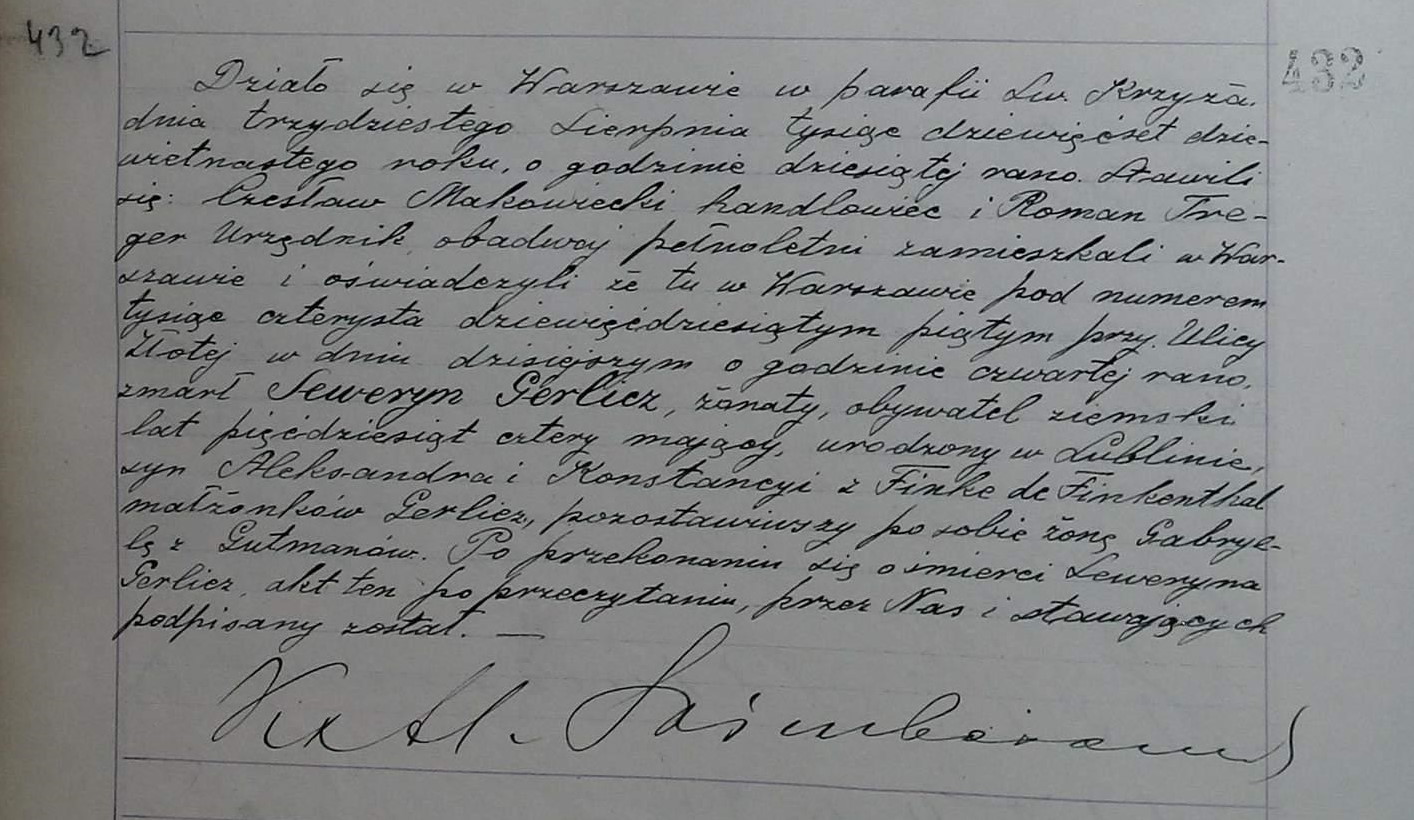 | sw.81831 | 30 | aug | 1919 | | | | | Kazimierz Reychman, Szkice genealogiczne, Warszawa 1936 |