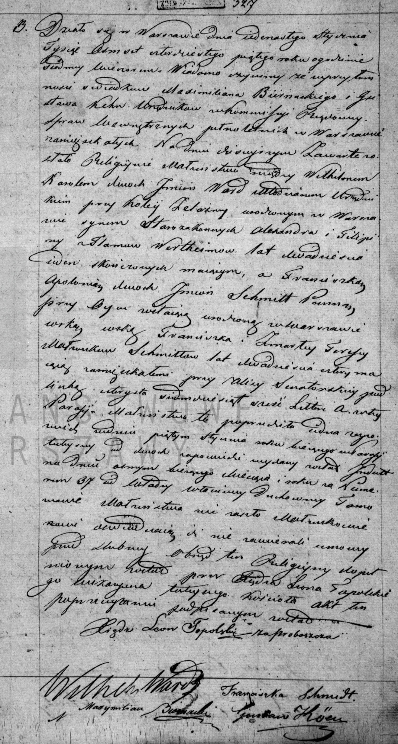 | sw.83368 | sw.432277 | sw.432278 (sw.83345) | sw.432279 (sw.83346) | Akt małżeństwa: Warszawa św. Andrzej (obecn. m. Warszawa), 3/1845 [indeks na http://geneteka.genealodzy.pl/] http://metryki.genealodzy.pl/metryki.php?op=kt&ar=1&zs=0159d&sy=1845&kt=2 [podgląd] |