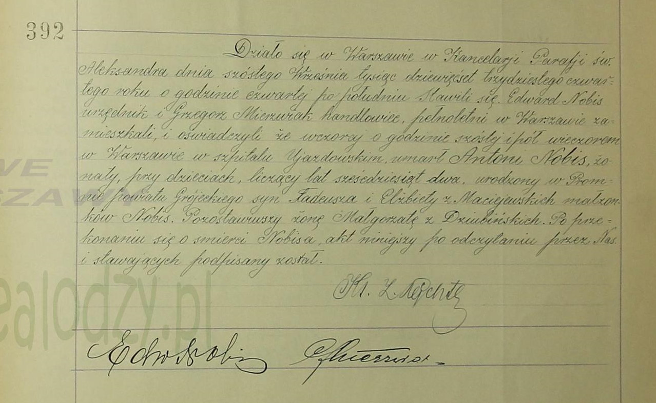 | genetekaz.11319511 | 6 | sep | 1934 | | xpar.1442 | Akt zgonu: Warszawa św. Aleksander (obecn. m. Warszawa), 392/1934 http://localhost/mjm/aleksander_1934_388-393.jpg [podglad] | | Akt zgonu obecny w bazie Geneteka |