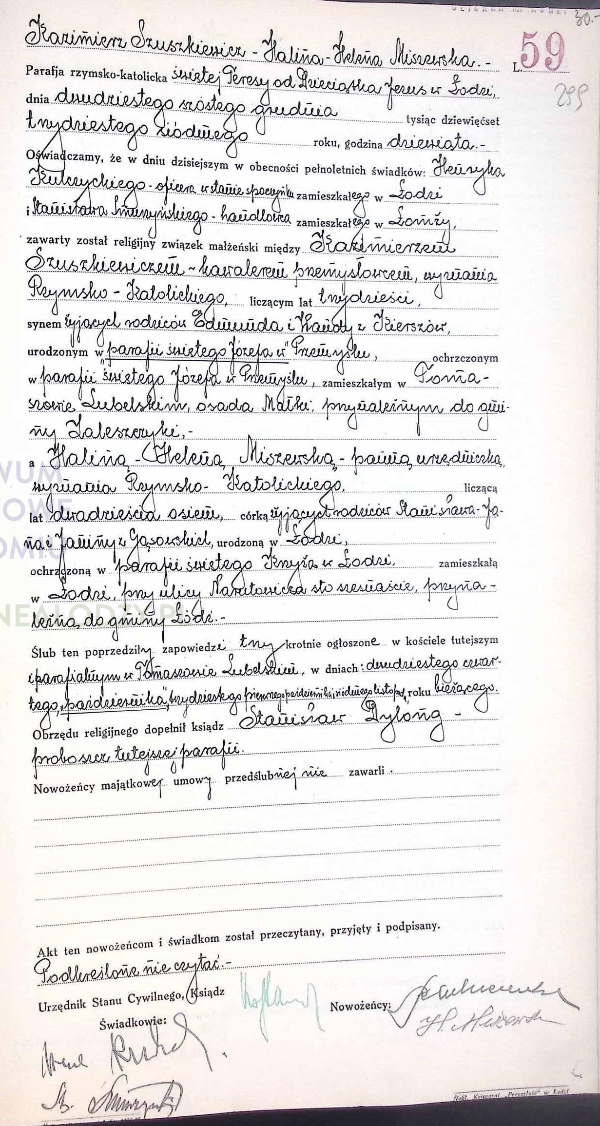 | sw.1307322 | sw.1307322 | sw.841318 (sw.841318) | sw.841319 (sw.841319) | Akt małżeństwa: Łódź św. Teresa (obecn. woj. łódz.), 59/1937 [indeks na http://geneteka.genealodzy.pl/] https://metryki.genealodzy.pl/ar3-zs2620d-sy1934b-kt4 [podgląd] |